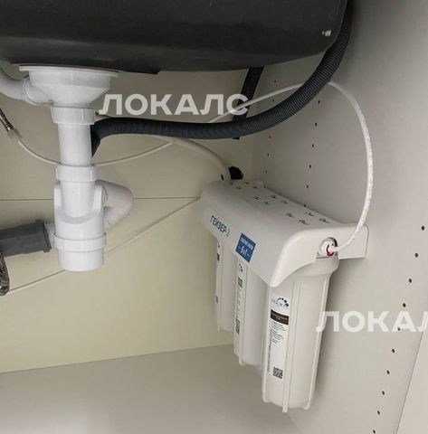 Кухня оборудована посудомоечной машиной, встроенной варочной панелью и духовым шкафом, холодильником, системой фильтрации воды.
