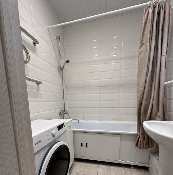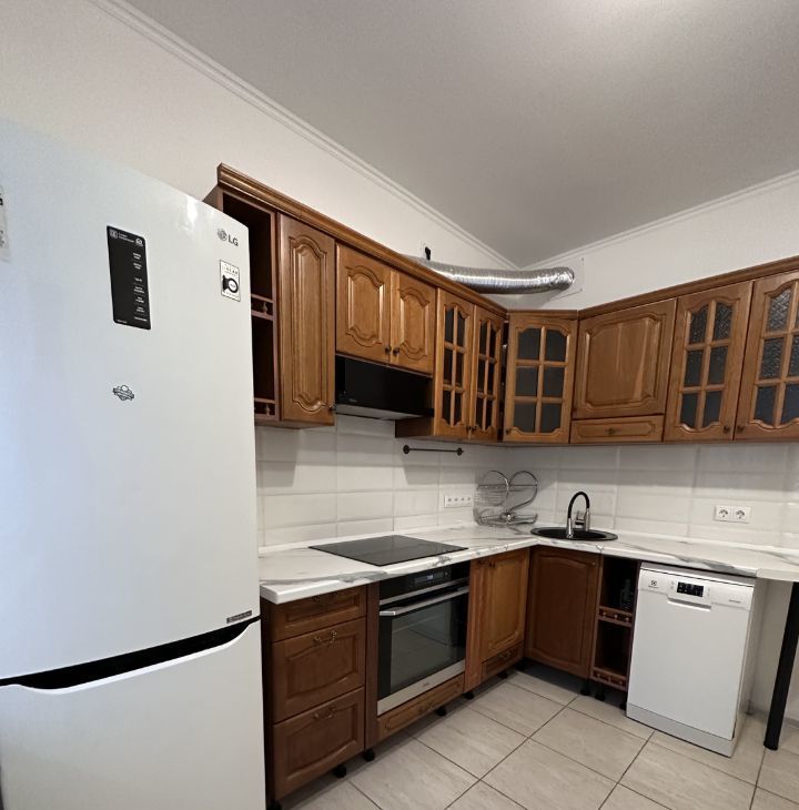 В квартире выполнен евроремонт, что создает атмосферу комфорта и уюта. Установлена современная техника: есть холодильник, посудомоечная и стиральная машины. Мебель в кухне добавляет функциональности пространству. Окна квартиры выходят во двор, поэтому в ней всегда тихо и спокойно. Санузел раздельный, в ванной установлена большая ванна. Имеется одна лоджия, где можно организовать зону отдыха.