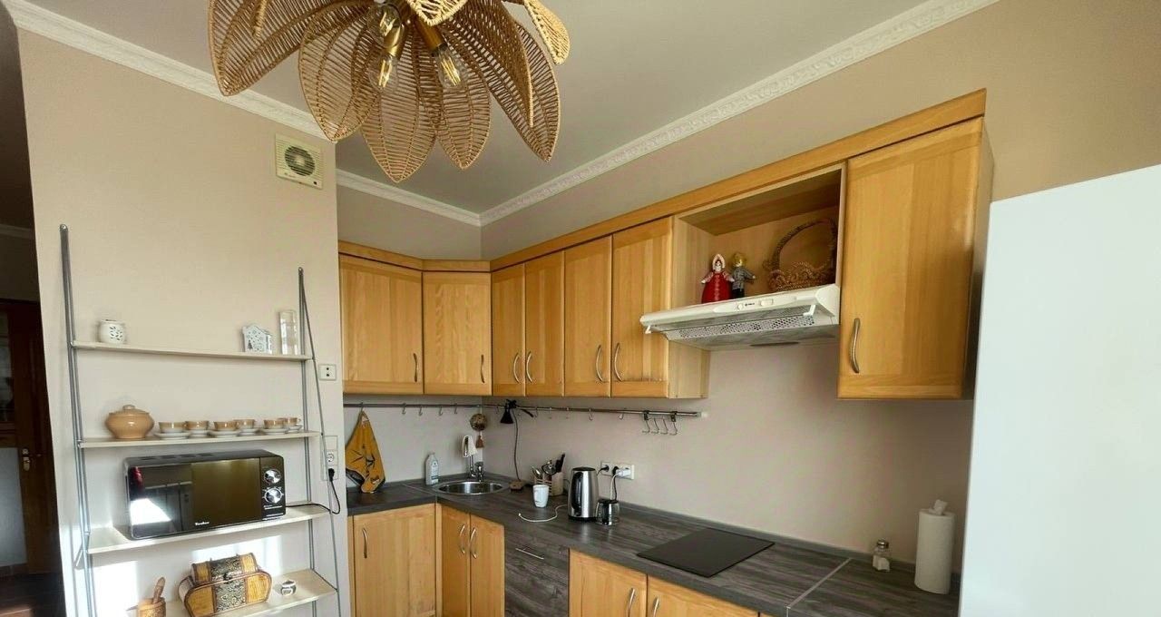 Квартира полностью укомплектована всей необходимой техникой и мебелью для жизни. Здесь есть все необходимое для проживания: стиральная машина, посудомоечная машина, холодильник, телевизор, вся кухонная мебель, а также японское массажное кресло.