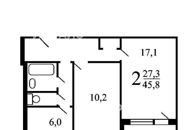2-к кв. Москва ул. Софьи Ковалевской, 2К4 (47.0 м²)