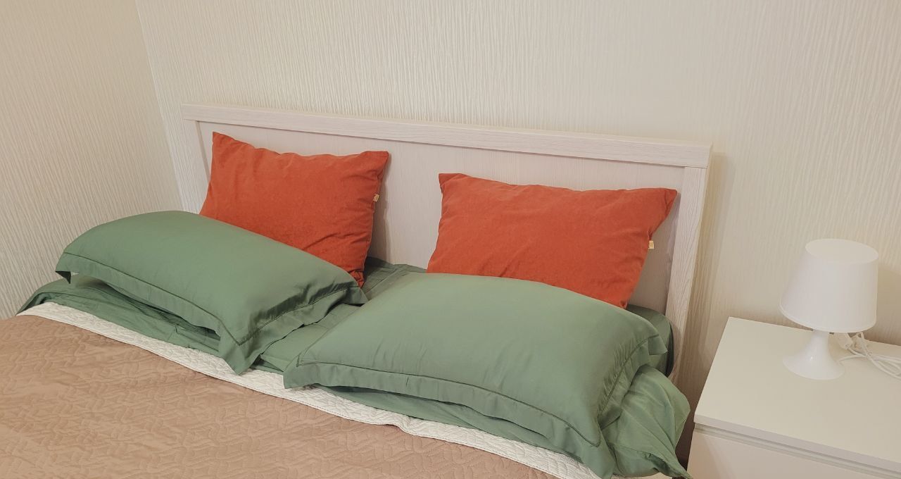 В каждой комнате шторы блэкаут + рулонные (для комфорта, от солнца). В квартиру мы купили Новый качественный текстиль для комфортного сна: гипоаллергенные подушки; одеяло; несколько комплектов постельного белья из дорогого хлопка; пушистые банные полотенца; плед; посуду для готовки.