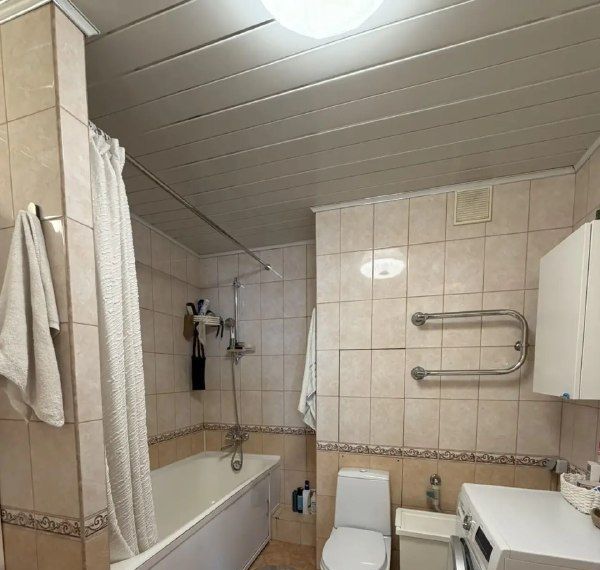 В квартире сделан евроремонт, качественные двери, фурнитура, пол плитка, ламинат, кухня с необходимой бытовой техникой (холодильник, посудомоечная машина, микроволновая печь, вытяжка).Большой совместный санузел, стиральная машина, качественная сантехника и смесители.