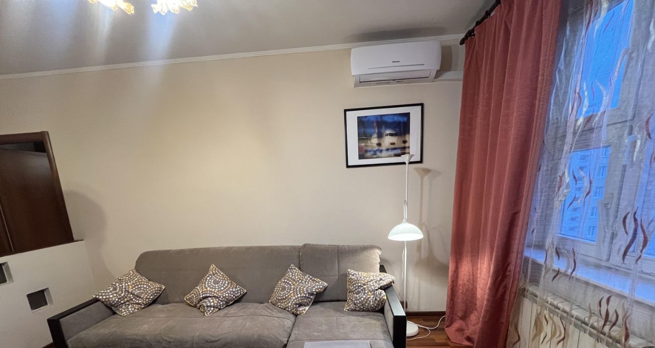 В квартире сделан свежий евроремонт, поэтому здесь приятно находиться. Просторная кухня с необходимой мебелью и техникой: холодильник, кондиционер и стиральная машина. В комнате также есть мебель. Из окон открывается вид во двор, что создаёт уютную атмосферу. В ванной комнате установлена ванна, санузел раздельный. На балконе можно обустроить зону отдыха.