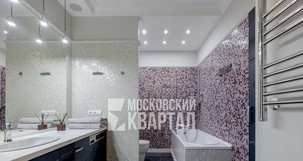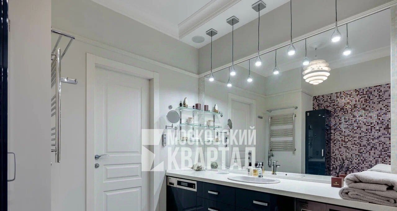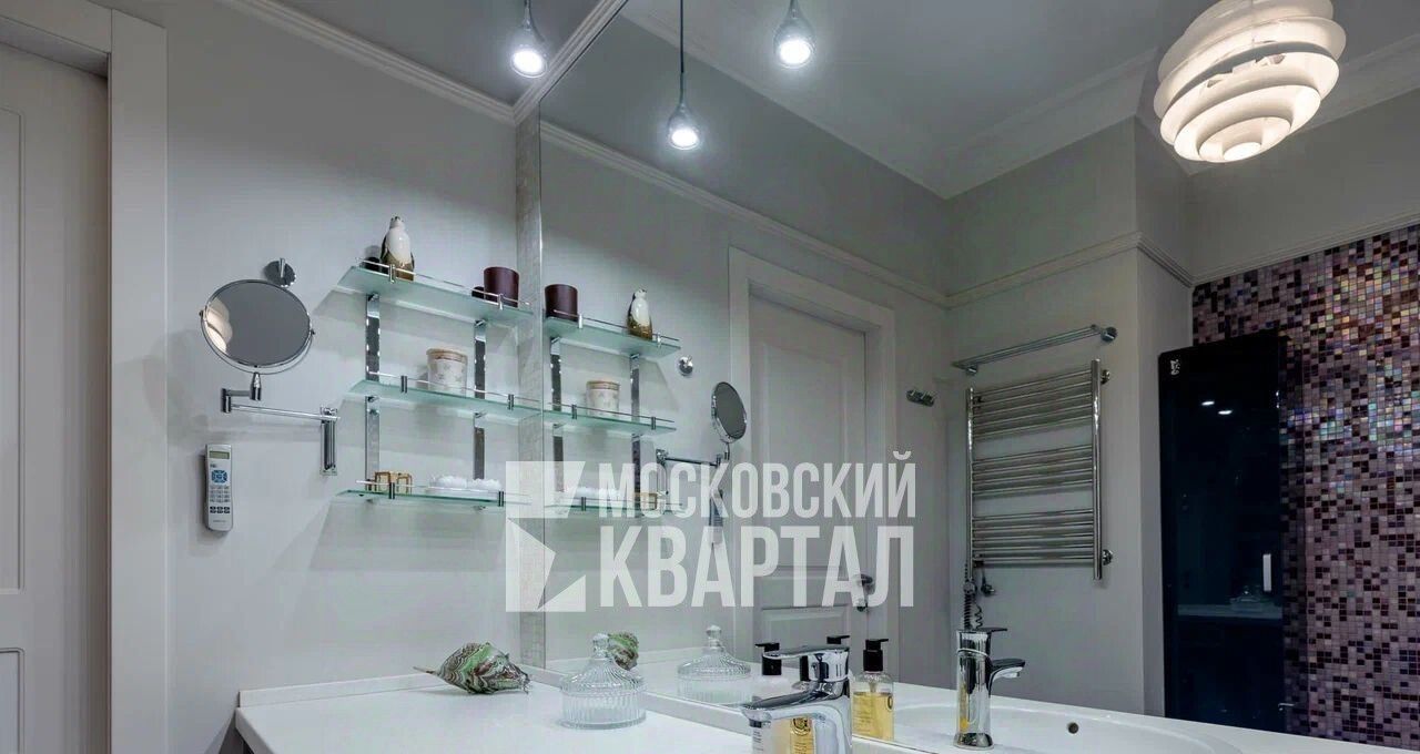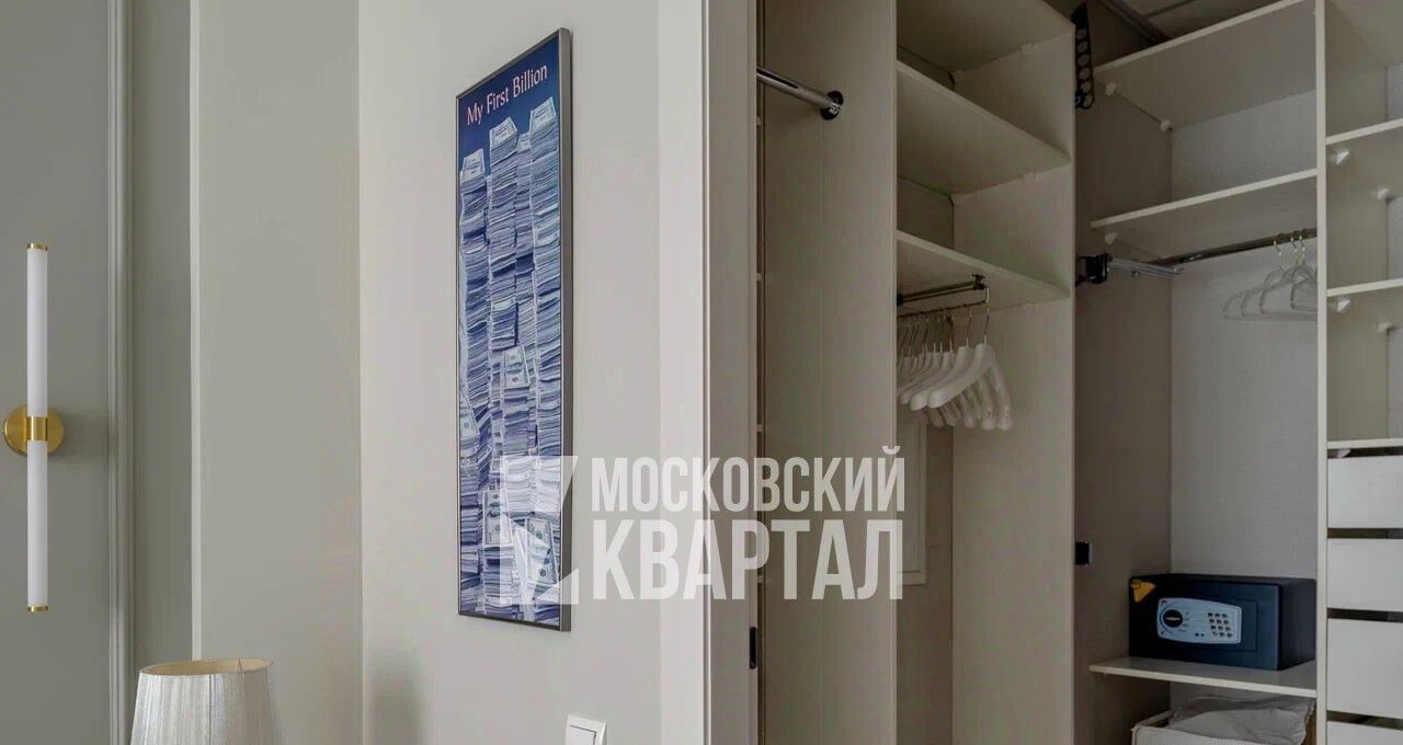 В квартире — тёплые полы (в том числе в ванной), кондиционер, просторная ванная комната 10 м², большая гардеробная, 2 сейфа