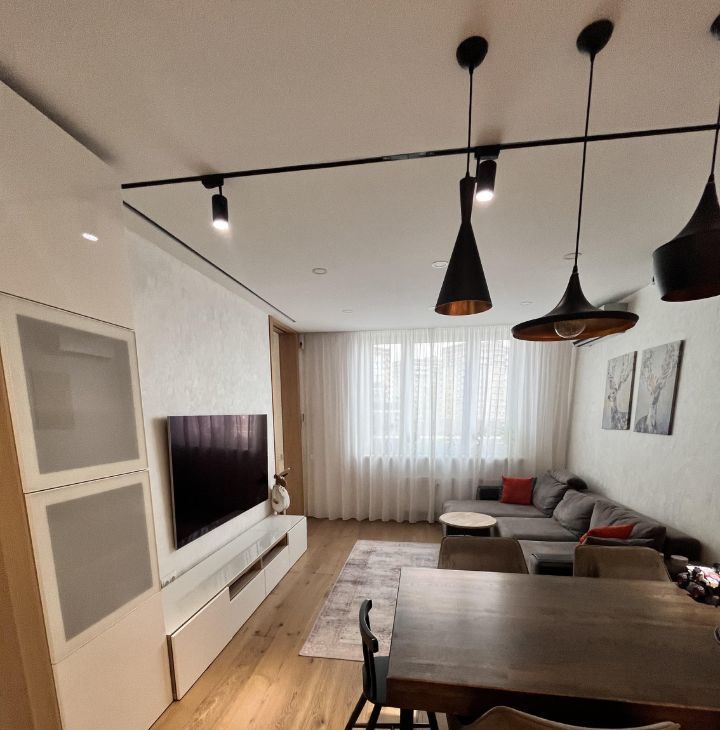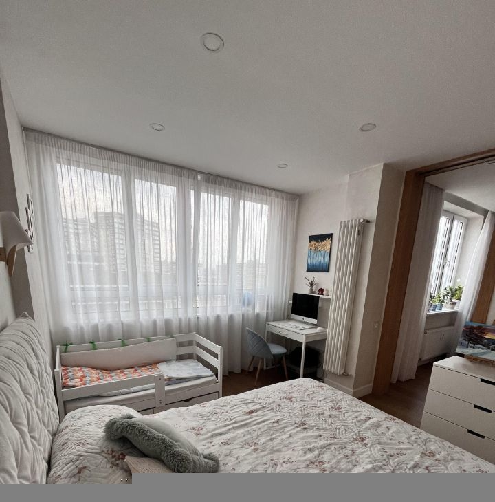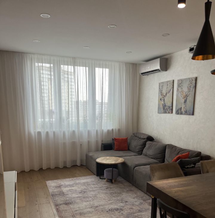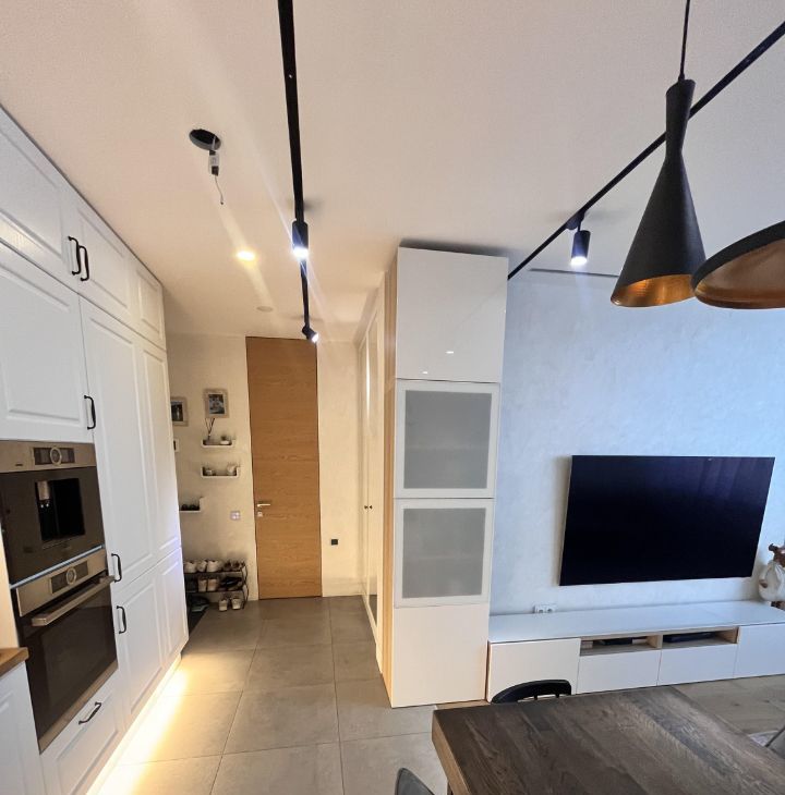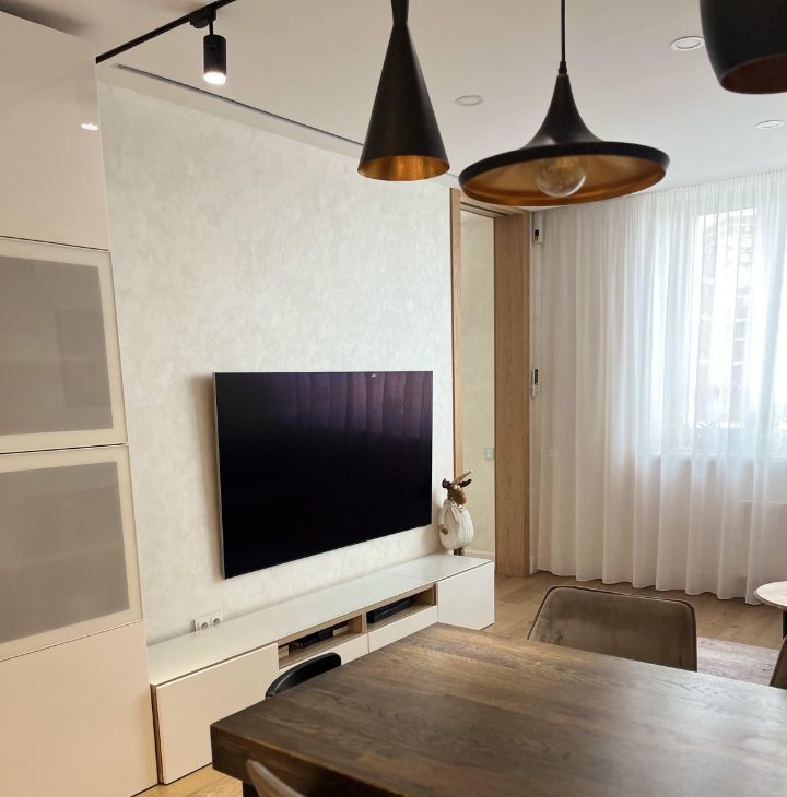 В ЖК Татьянин Парк светлая евродвушка. Современная мебель. Кровать 160х200, диван, гардеробная, рабочее место. В квартире сделан качественный современный дизайнерский ремонт, сантехника Hansgrohe. Для вашего удобства установлена современная техника : кондиционер с управлением с телефона, холодильник, посудомоечная и стиральная машины BOSH, духовой шкаф, микроволновая печь, а также телевизор 75 дюймов Samsung. Система умный дом HDL, шторы открываются на электроприводе, в квартире моторизированный экран в потолке и проектор Benq для просмотра кино. Разные зоны освещения для уюта. Теплые полы. Система видеонаблюдения. На этаже 4 квартиры.