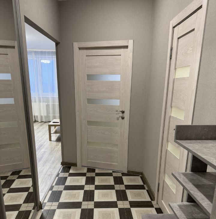 В квартире сделан современный ремонт, есть вся необходимая мебель как на кухне, так и в комнате. Оснащена современной техникой: холодильником, телевизором и стиральной машиной. Планировка включает в себя совмещенный санузел с ванной, а также просторную лоджию. Высота потолков — 2,8 метра, что создает ощущение простора и света.