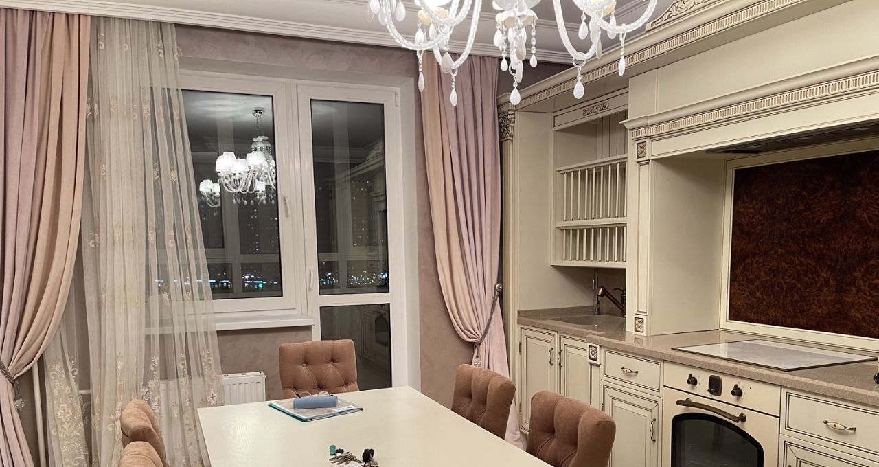 Предлагается в аренду просторная двухкомнатная квартира в современном жилом комплексе, расположенном в районе Солнцево. Общая площадь квартиры составляет 73 кв.м, с жилой площадью 46 кв.м и большой кухней размером 18 кв.м. Квартира находится на 10 этаже 12-этажного кирпичного дома, построенного в 2017 году. Высота потолков составляет 3 метра, что добавляет ощущение простора и света.