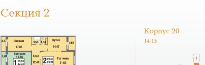2-к кв. Москва ул. Татьянин Парк, 16к1 (82.6 м²)