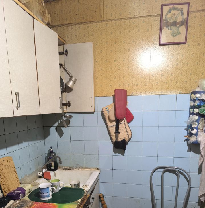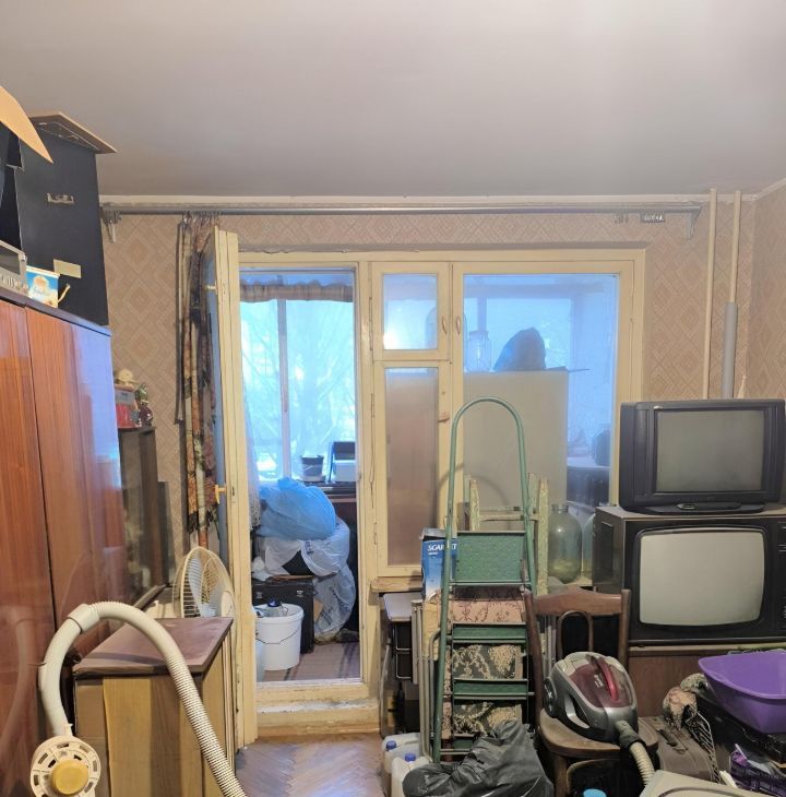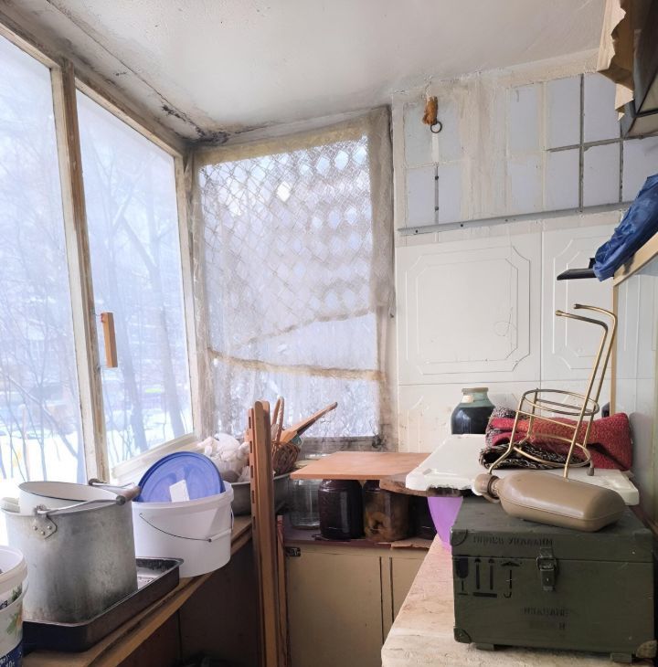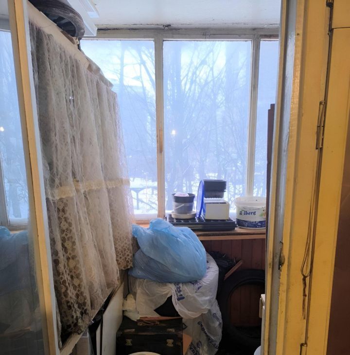 Продаётся 2-х комнатная квартира без ремонта, с огромным балконом и встроенными местами для хранения.