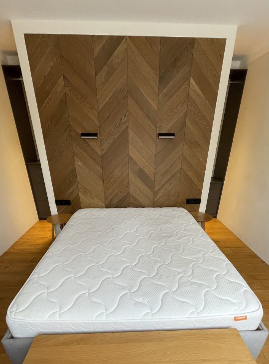 Двуспальная кровать с подъемным механизмом (большое место для хранения белья)