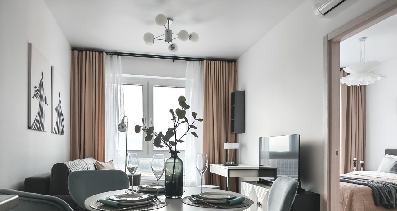 Евро 2-комнатная (кухня-гостиная и спальня).