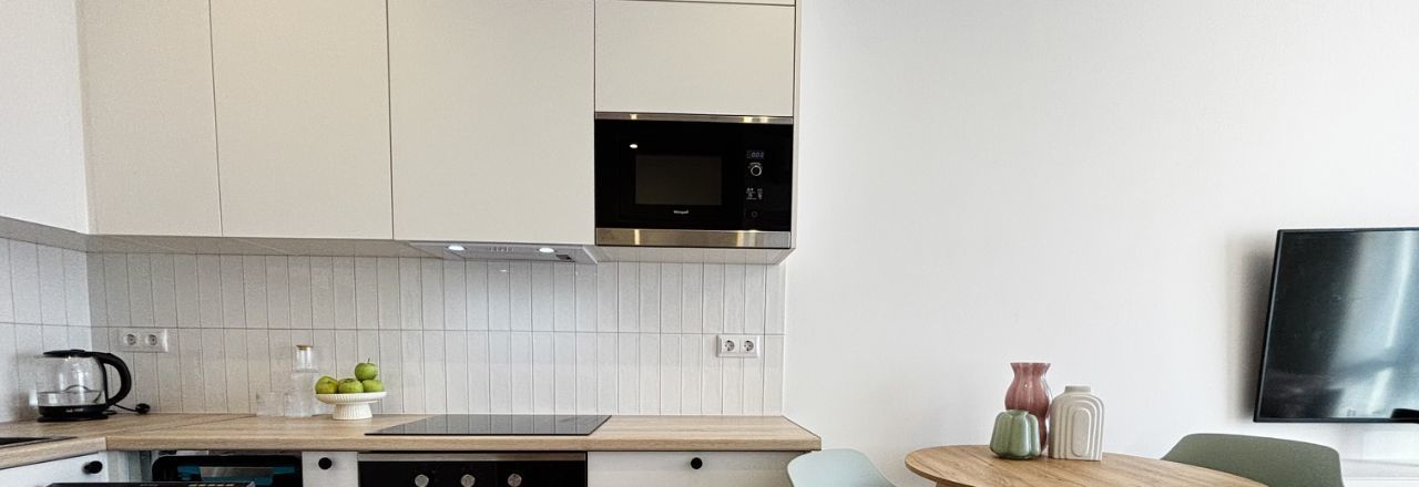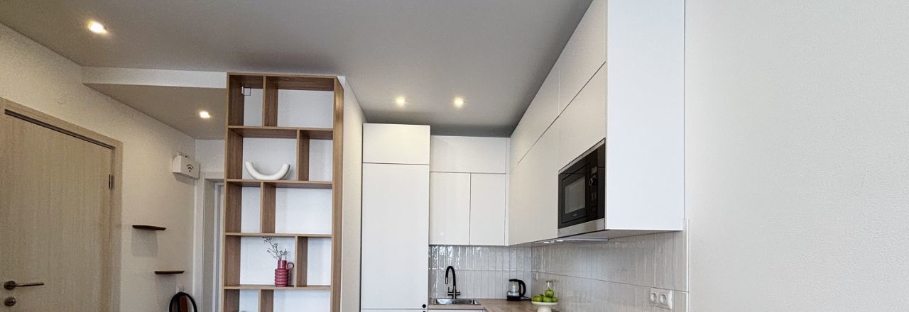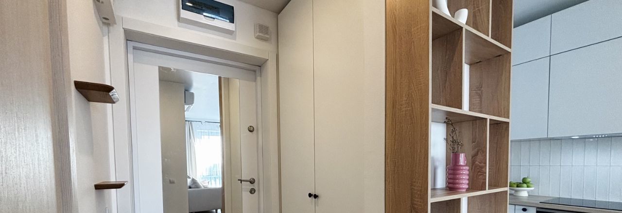 Наполнение продумано собственником до МЕЛОЧЕЙ! Полностью меблированная квартира! Кухня оборудована техникой. А именно: варочная панель, вытяжка, духовой шкаф, посудомоечная машина, СВЧ, чайник и вместительный холодильник. Кухня-гостиная с уютным раскладным диваном, оборудованный ТВ-зоной. В спальне комфортная двуспальная кровать с подьемным механизмом и системой хранения. В квартире установлен кондиционер, будет комфортно в любую погоду. Много места для хранения ваших вещей.