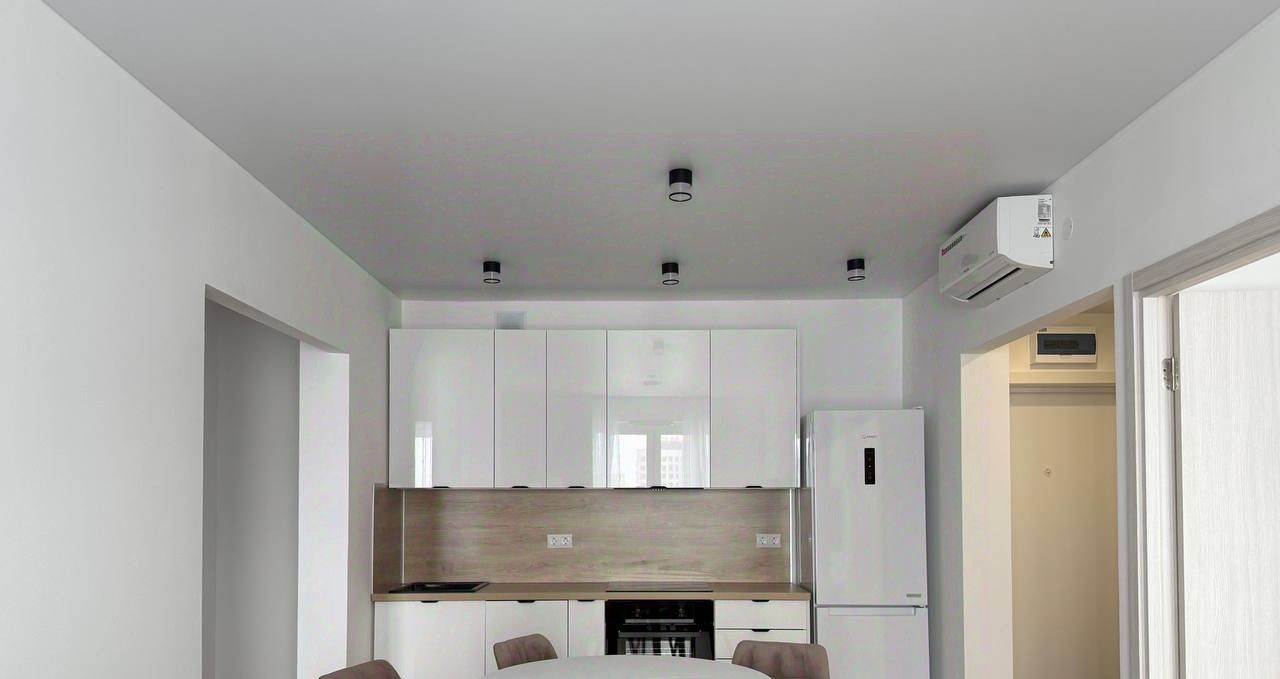 Огромная кухня гостиная 19 кв.м с удобным телевизионным местом. Современная бытовая техника, включая посудомоечную машину и кондиционер. Большая гардеробная в прихожей. В одной из комнат нет спального места, есть возможность поставить своё или превратить её в спорт зал или кабинет.