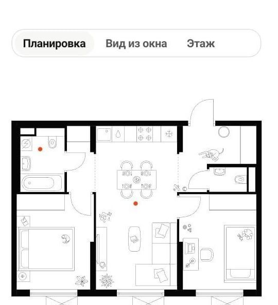В квартире есть всё необходимое для комфортного проживания. Новая мебель в комнате и на кухне. Установлена вся необходимая техника: холодильник, телевизор, стиральная и посудомоечная машины, микроволновая печь. Просторная ванная комната с санузлом, а также еще отдельный санузел.