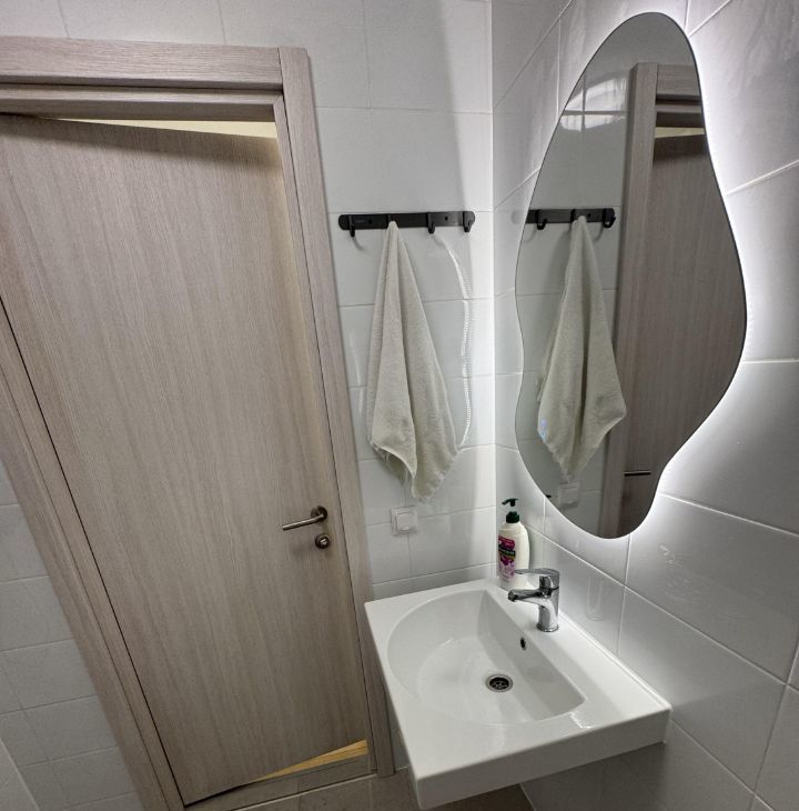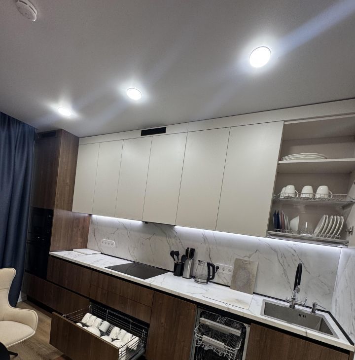 С новым капитальным ремонтом , с новой качественной мебелью и техникой ( холодильник , стиральная , сушильная , посудомоечная , микроволновка , духовка , чайник электрический , индукционная плита , вытяжка , кондиционер , робот пылесос с влажной и сухой уборкой). При необходимости для вас могу оставить новую , красивую , качественную посуду. Кухонный гарнитур один из самых качественных. В спальнях две двуспальные кровати с подъёмным механизмом , с матрасами от Асконы. В спальне настоящие блэкаут шторы , со 100% затемнением. Диван в гостиной раскладывается и так же имеется под ним хранение (очень мягкий и качественный). Люстры с регулировкой белого света и с цветной подсветкой (имеются различные цвета и режимы). Стол на кухне раскладной. имеется фильтр для питьевой воды , и дозатор для моющего средства на кухне. Большое мусорное ведро с датчиком движения для открытия и закрытия. Холодильник очень большой и вместительный.