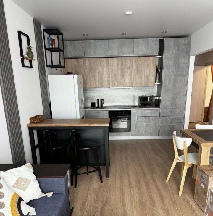 Евро-трешка с двумя изолированными комнатами и просторной кухней-гостиной общей площадью 70 м2.