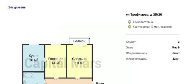 2-к кв. Москва ул. Трофимова, 35/20 (64.0 м²)