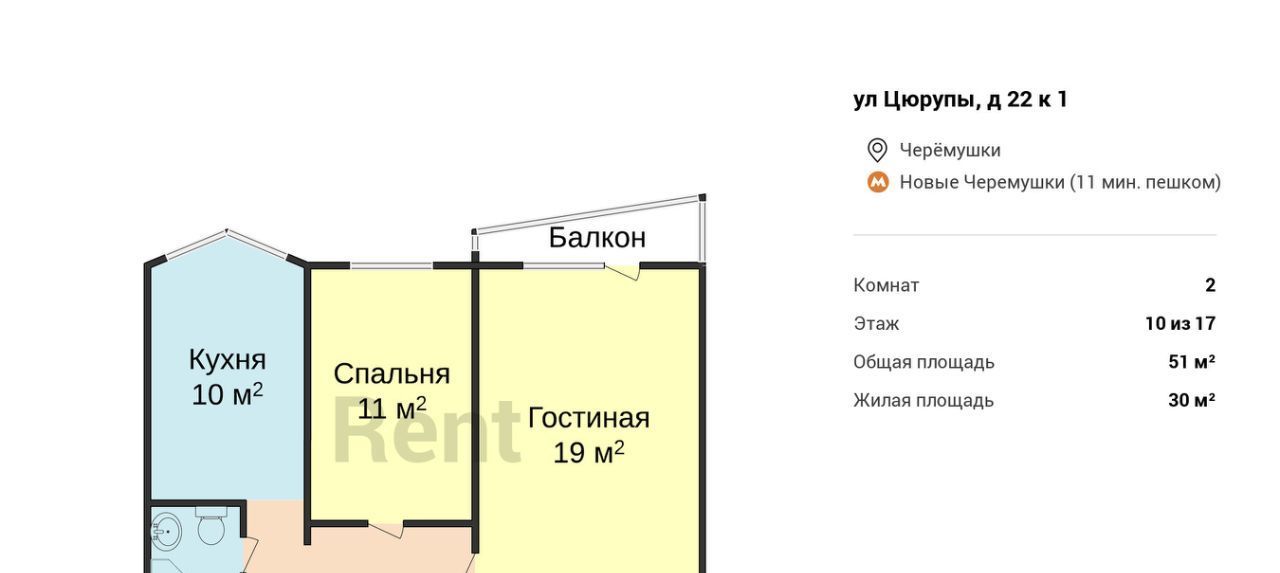 2-к кв. Москва ул. Цюрупы, 22К1 (51.0 м²)
