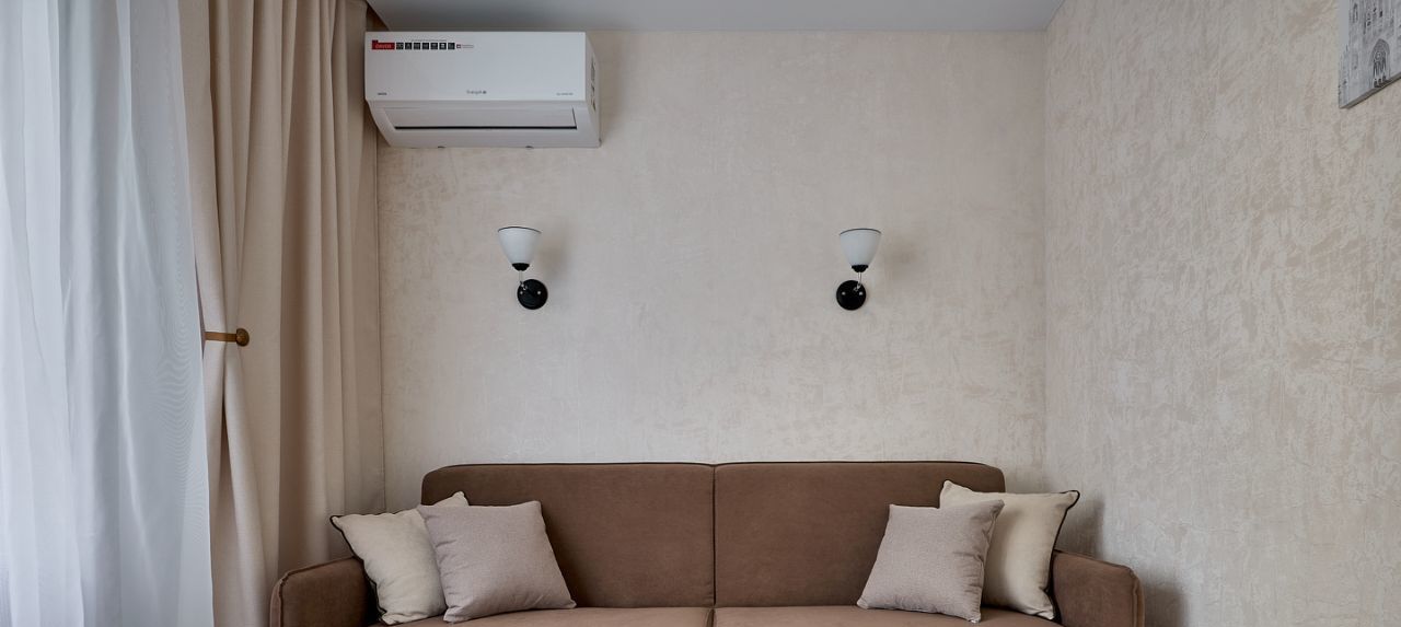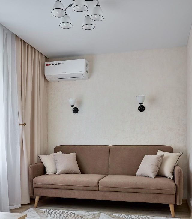 В гостиной комфортный диван с раскладывающимся механизмом, что позволяет использовать его как дополнительное полноценное спальное место. Кондиционеры установлены в спальной комнате и гостиной все для вашего комфорта!