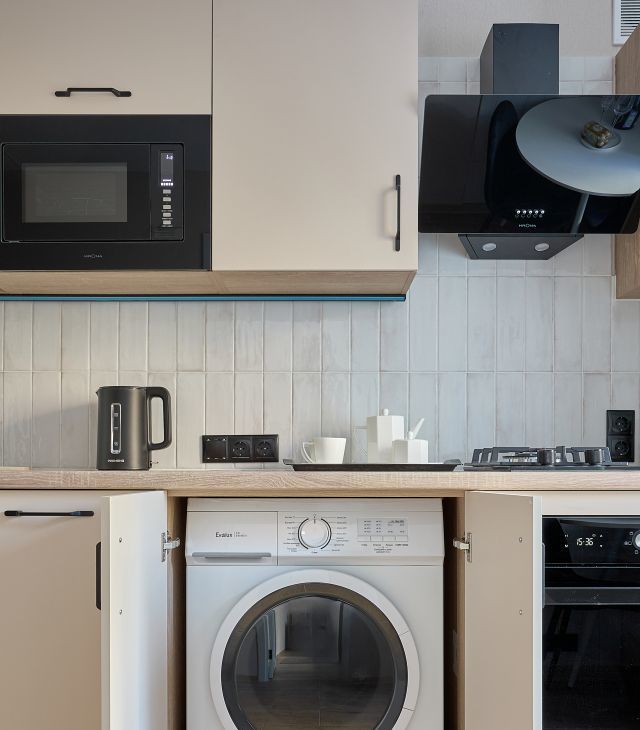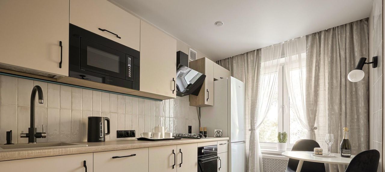 Современная мебель, качественная бытовая техника, новый ремонт, а также такие необходимые вещи такие как пылесос, чайник, гладильная доска, утюг.