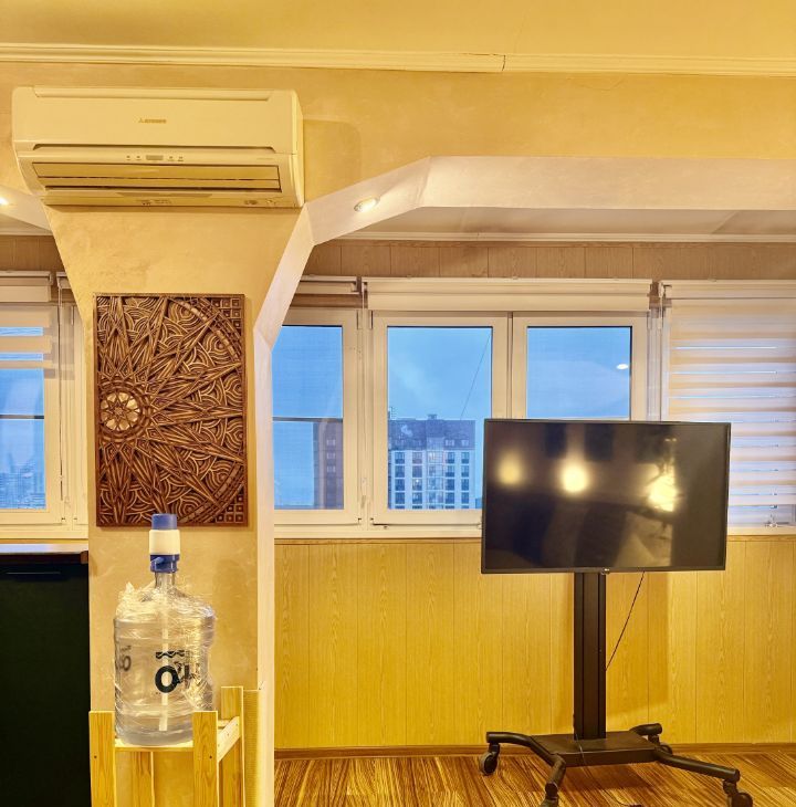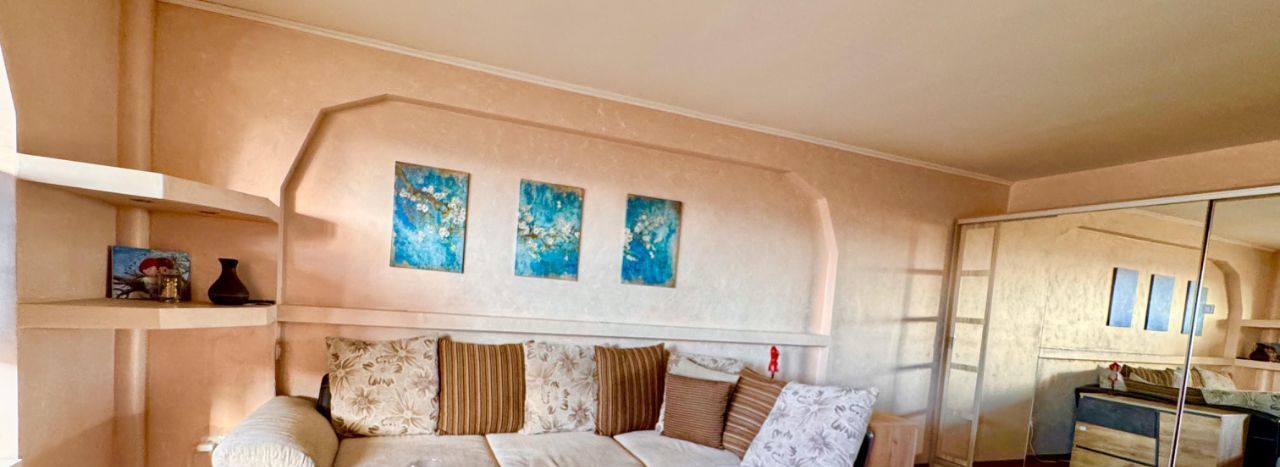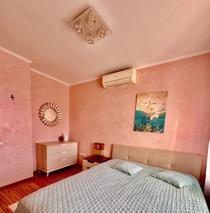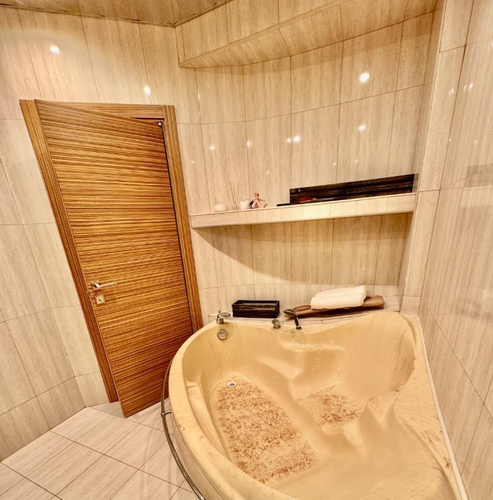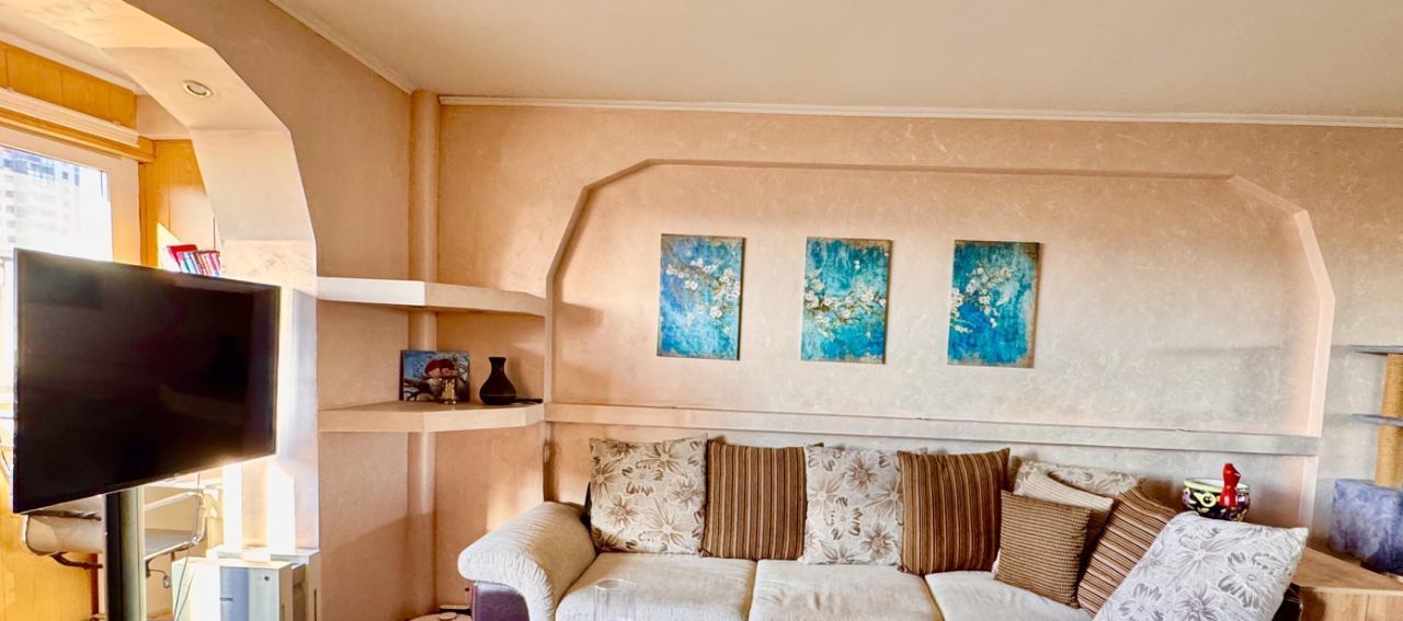 Квартира полностью меблирована и укомплектована всей необходимой бытовой техникой: новый холодильник no-frost, сенсорная варочная панель, духовой шкаф, встроенная СВЧ (кухонная техника Mielle), стиральная машина, большой телевизор, 2 кондиционера, полотенцесушитель, wi-fi роутер (интернет отличного качества уже подключен и работает), пылесос, кухонный гарнитур, посуда, обеденная группа. В гостиной большой раскладывающийся диван, в спальне полноценная двуспальная кровать. На лоджии оборудовано теплое уютное рабочее место с естественным освещением в дневное время. Большой функциональный шкаф-купе, а также много дополнительных мест для хранения. Поистине королевская ванная комната в мраморе! Просторная прихожая.