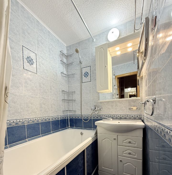 В квартире сделан косметический ремонт. Здесь есть все необходимое для комфортного проживания: кондиционер, холодильник и стиральная машина. Мебель установлена как на кухне, так и в комнате. Ванная комната оборудована ванной, а также имеется отдельный санузел. Для удобства есть балкон и доступ в интернет.