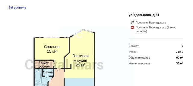Предлагается 2-комнатная квартира общей площадью 64.3 м² недалеко от станции метро "Проспект Вернадского". Высокие потолки увеличивают пространство, наполняя его светом. Для комфортного проживания в наличии имеется вся необходимая мебель, а также нагреватель воды и система теплого пола. Кухонный гарнитур оснащен посудомоечной машиной, духовой печью. Для удобства организована гардеробная комната. Окна обращены во двор, обеспечивая тишину.