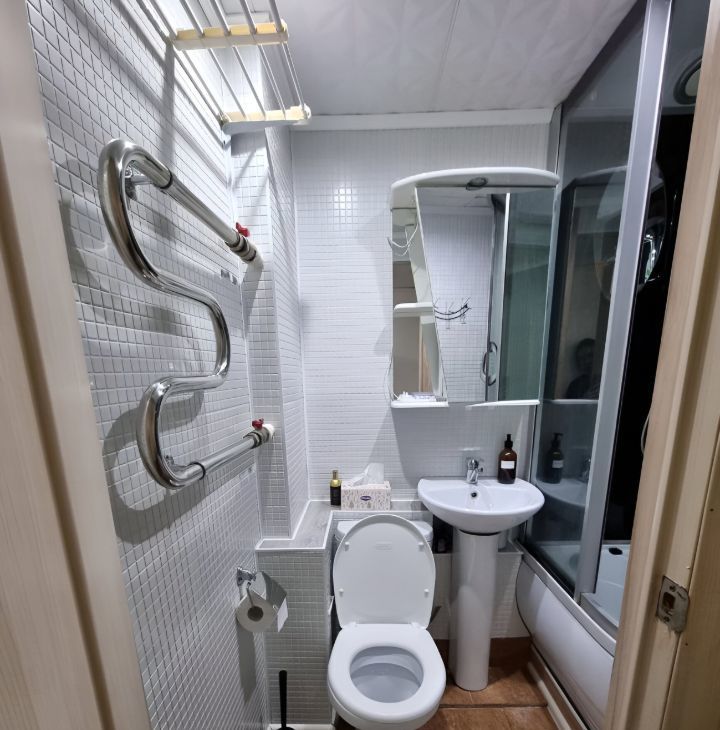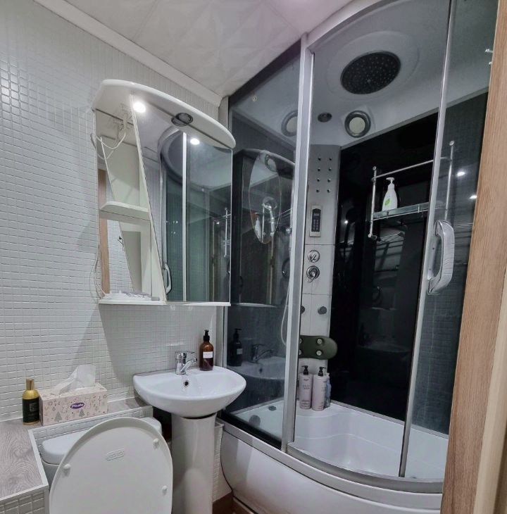 Санузел совмещенный, оснащен душевой кабиной.
