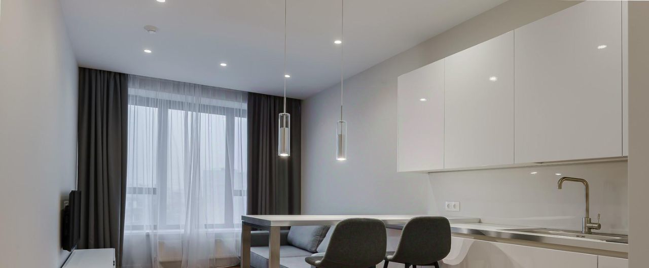 Предлагается в аренду 2-комнатная квартира 3235 с евро планировкой (кухня-гостиная + 1 спальня) с высокими потолками площадью 45 м2, расположенная на одиннадцатом этаже нового арендного дома Матч Поинт. Окна апартаментов выходят на улицу Василисы Кожиной. Современный эргономичный дизайн, вся необходимая мебель, техника, разработанная с использованием умных технологий. Просторная кухня-гостиная оснащена встроенной техникой фирмы Hotpoint: 2-х камерным холодильником, варочной 4-х комфорочной панелью, духовым шкафом, посудомоечной машиной и вытяжкой. Мебель европейского производства: при входе в апартаменты расположен вместительный шкаф (Permo, Италия), пуф, массив которого выполнен из бука и хвойных пород, материал обивки - ткань "гусиная лапка", панель вешалка. Зона кухни оборудована комплектом кухонной мебели с деревянными фасадами благородного шоколадно-коричневого цвета, стильной барной стойкой и барными стульями на две персоны. В апартаментах предусмотрены два спальных места: в гостиной двуспальный раскладной диван (190 см * 150 см, механизм "еврокнижка", тканевая обивка Casain piain); в спальне большая кровать (180 см * 200 см) с мягким изголовьем и матрасом, выполненным из бельгийского материала с ортопедическим эффектом. Благодаря 5-ти зональному пружинному блоку матраса Ваш позвоночник будет получать превосходную поддержку. Помимо кровати в спальне из мебели есть прикроватные тумбочки со стильными подвесными светильниками над ними, шкаф (вся мебель фирмы Permo, Италия). Плазменный TV от Panasonic с TV тумбой дизайнеры разместили в гостиной. Для Вашего комфорта в каждой комнате установлен кондиционер. На окнах помимо тюли есть портьеры Design&Colors, SOLKLIMA DESEN. Совмещенный санузел оборудован ванной и раковиной, вместительной и удобной в использовании стиральной машиной, большим зеркалом с подсветкой.