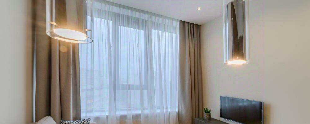 Предлагается в аренду 2-комнатная квартира 4152 с евро планировкой (кухня-гостиная + 1 спальня), высокими потолками площадью 53 м2, расположенная на девятом этаже нового арендного дома класса Матч Поинт. Окна апартаментов выходят на улицу Василисы Кожиной. Современный эргономичный дизайн, мебель европейского производства, вся необходимая техника, разработанная с использованием умных технологий. Просторная кухня-гостиная оснащена встроенной техникой фирмы Hotpoint: 2-х камерным холодильником, варочной 4-х комфорочной панелью, духовым шкафом, посудомоечной машиной и вытяжкой. При входе в апартаменты вместительная гардеробная комната (5,2 м2), пуф, массив которого выполнен из бука и хвойных пород, материал обивки - ткань "гусиная лапка", панель вешалка. Зона кухни оборудована комплектом кухонной мебели с деревянными фасадами благородного шоколадно-коричневого цвета, стильной барной стойкой и барными стульями на две персоны. В апартаментах предусмотрены два спальных места: в гостиной двуспальный раскладной диван (190 см * 150 см, механизм "еврокнижка", тканевая обивка Casain piain); в спальне большая кровать (180 см * 200 см) с мягким изголовьем и матрасом, выполненным из бельгийского материала с ортопедическим эффектом. Благодаря 5-ти зональному пружинному блоку матраса Ваш позвоночник будет получать превосходную поддержку. Помимо кровати в спальне из мебели есть прикроватные тумбочки со стильными подвесными светильниками над ними, шкаф (вся мебель фирмы Permo, Италия). Чтобы ничего не отвлекало от здорового сна - плазменный TV от Panasonic с TV тумбой дизайнеры разместили в гостиной. Для Вашего комфорта в каждой комнате установлен кондиционер. На окнах помимо тюли есть портьеры Design&Colors, SOLKLIMA DESEN. Совмещенный санузел оборудован душевой кабиной и раковиной, вместительной и удобной в использовании стиральной машиной, большим зеркалом с подсветкой.
