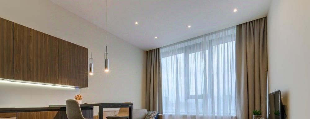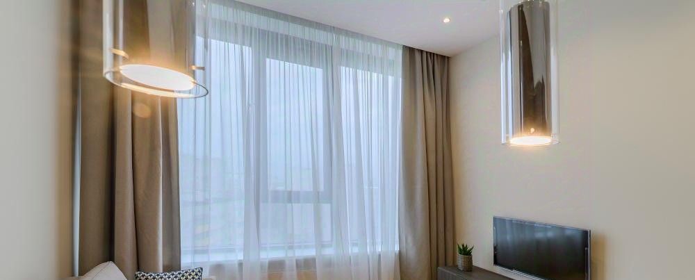 Предлагается в аренду 2-комнатная квартира 4066 с евро планировкой (кухня-гостиная + 1 спальня), высокими потолками площадью 54 м2, расположенная на пятом этаже нового арендного дома класса Матч Поинт. Окна апартаментов выходят на улицу Василисы Кожиной. Современный эргономичный дизайн, мебель европейского производства, вся необходимая техника, разработанная с использованием умных технологий. Просторная кухня-гостиная оснащена встроенной техникой фирмы Hotpoint: 2-х камерным холодильником, варочной 4-х комфорочной панелью, духовым шкафом, посудомоечной машиной и вытяжкой. При входе в апартаменты вместительная гардеробная комната (5,2 м2), пуф, массив которого выполнен из бука и хвойных пород, материал обивки - ткань "гусиная лапка", панель вешалка. Зона кухни оборудована комплектом кухонной мебели с деревянными фасадами благородного шоколадно-коричневого цвета, стильной барной стойкой и барными стульями на две персоны. В апартаментах предусмотрены два спальных места: в гостиной двуспальный раскладной диван (190 см * 150 см, механизм "еврокнижка", тканевая обивка Casain piain); в спальне большая кровать (180 см * 200 см) с мягким изголовьем и матрасом, выполненным из бельгийского материала с ортопедическим эффектом. Благодаря 5-ти зональному пружинному блоку матраса Ваш позвоночник будет получать превосходную поддержку. Помимо кровати в спальне из мебели есть прикроватные тумбочки со стильными подвесными светильниками над ними, шкаф (вся мебель фирмы Permo, Италия). Чтобы ничего не отвлекало от здорового сна - плазменный TV от Panasonic с TV тумбой дизайнеры разместили в гостиной. Для Вашего комфорта в каждой комнате установлен кондиционер. На окнах помимо тюли есть портьеры Design&Colors, SOLKLIMA DESEN. Совмещенный санузел оборудован душевой кабиной и раковиной, вместительной и удобной в использовании стиральной машиной, большим зеркалом с подсветкой.