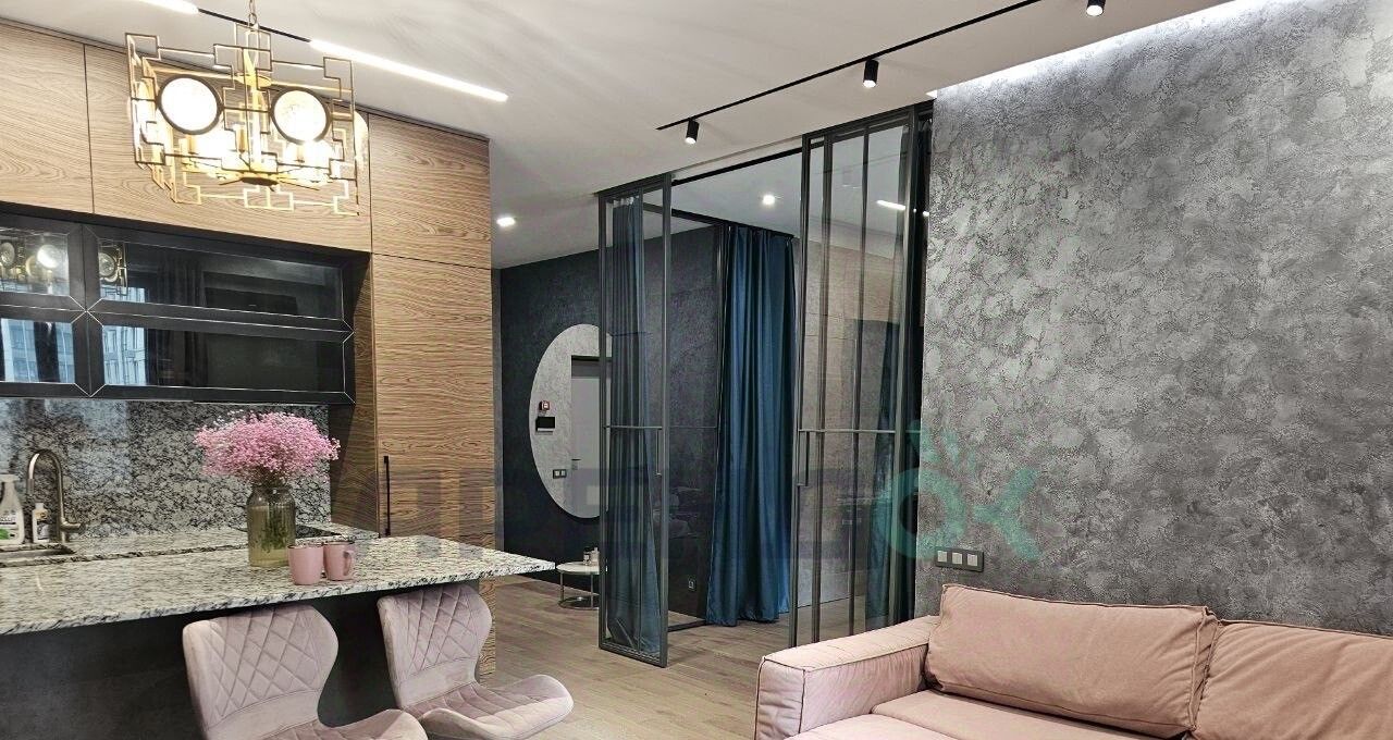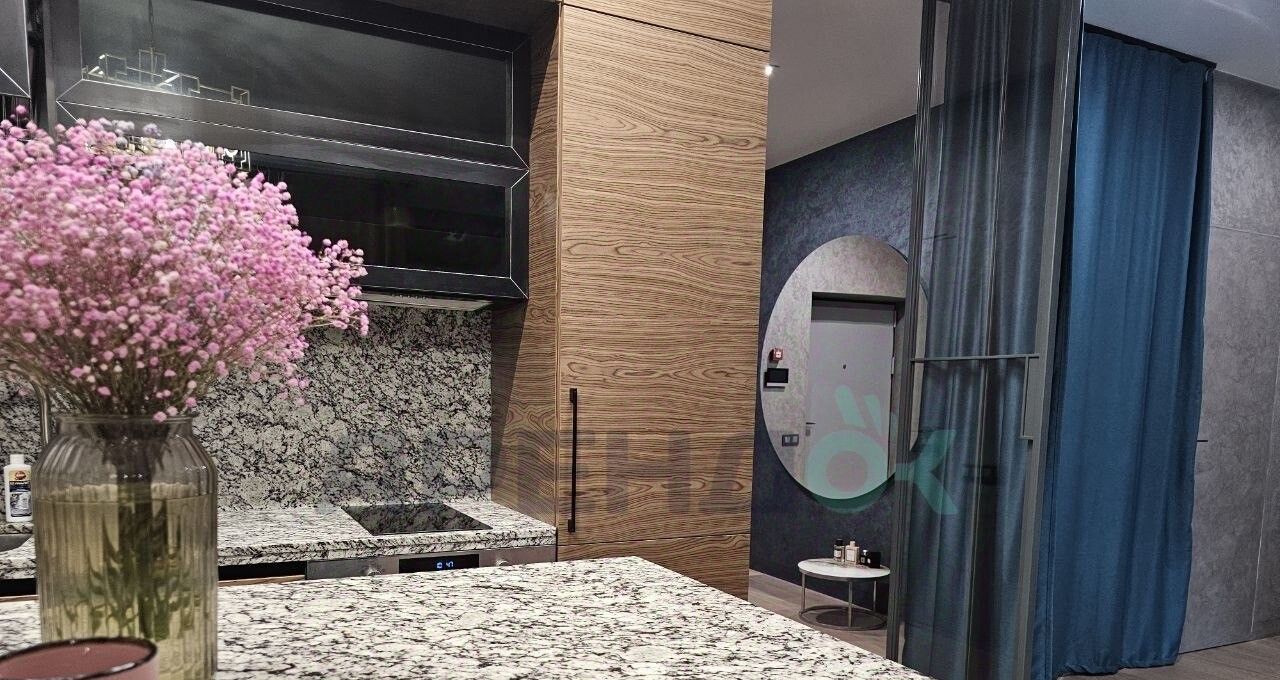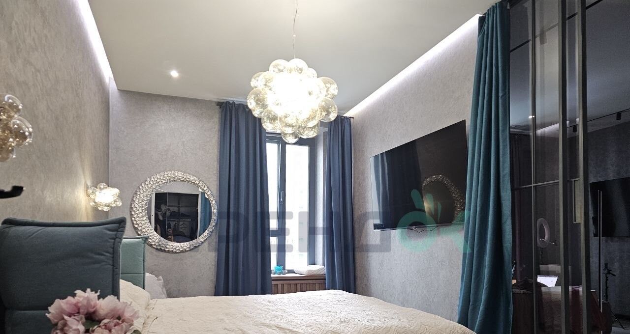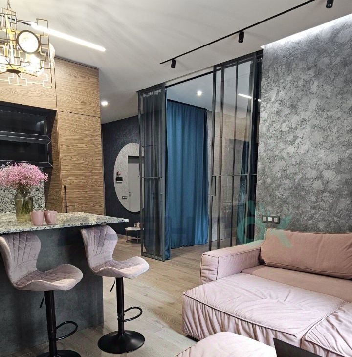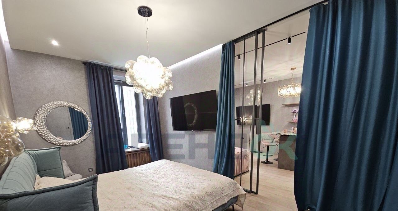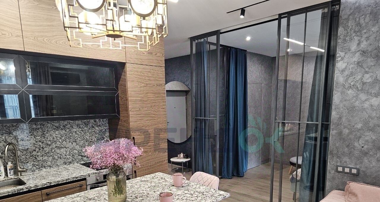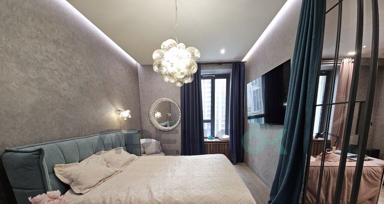 Предлагается дизайнерская и уютная квартира в ЖК бизнес-класса Матч Пойнт. Планировка : просторная кухня-гостиная, спальня, санузел с душевой кабиной и большая гардеробная!