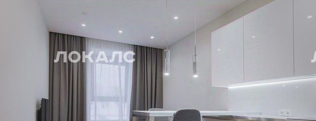 Просторная, 2-комнатная квартира 3477 с гардеробной, евро- планировка (кухня-гостиная + спальня+ санузел), с высокими потолками, площадью 59 м2, расположенная на двадцать третьем этаже нового арендного дома Матч Поинт.