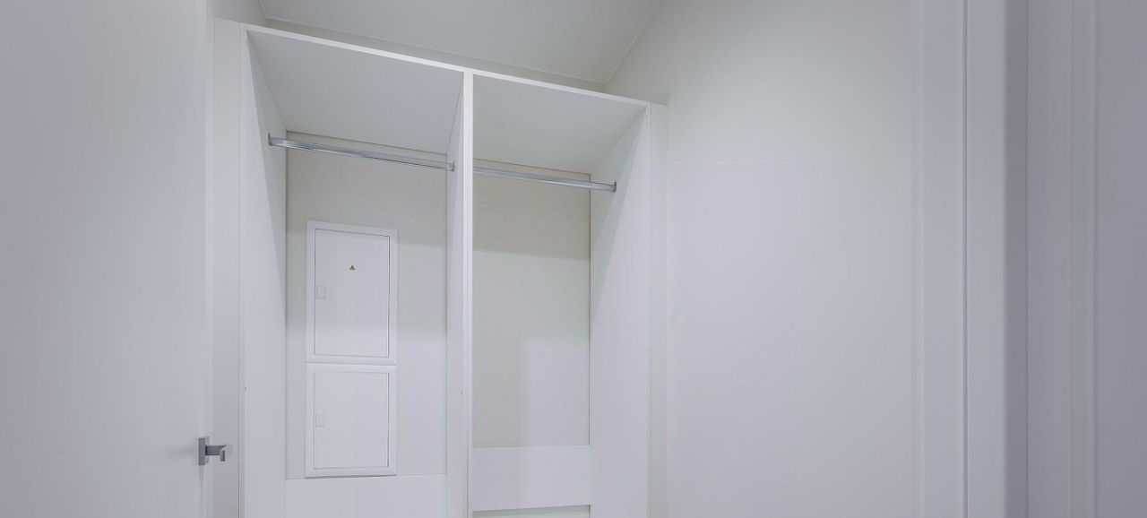 Просторная, 2-комнатная квартира 3447 с гардеробной, евро- планировка (кухня-гостиная + спальня+ санузел), с высокими потолками, площадью 59 м2, расположенная на двадцать первом этаже нового арендного дома Матч Поинт.