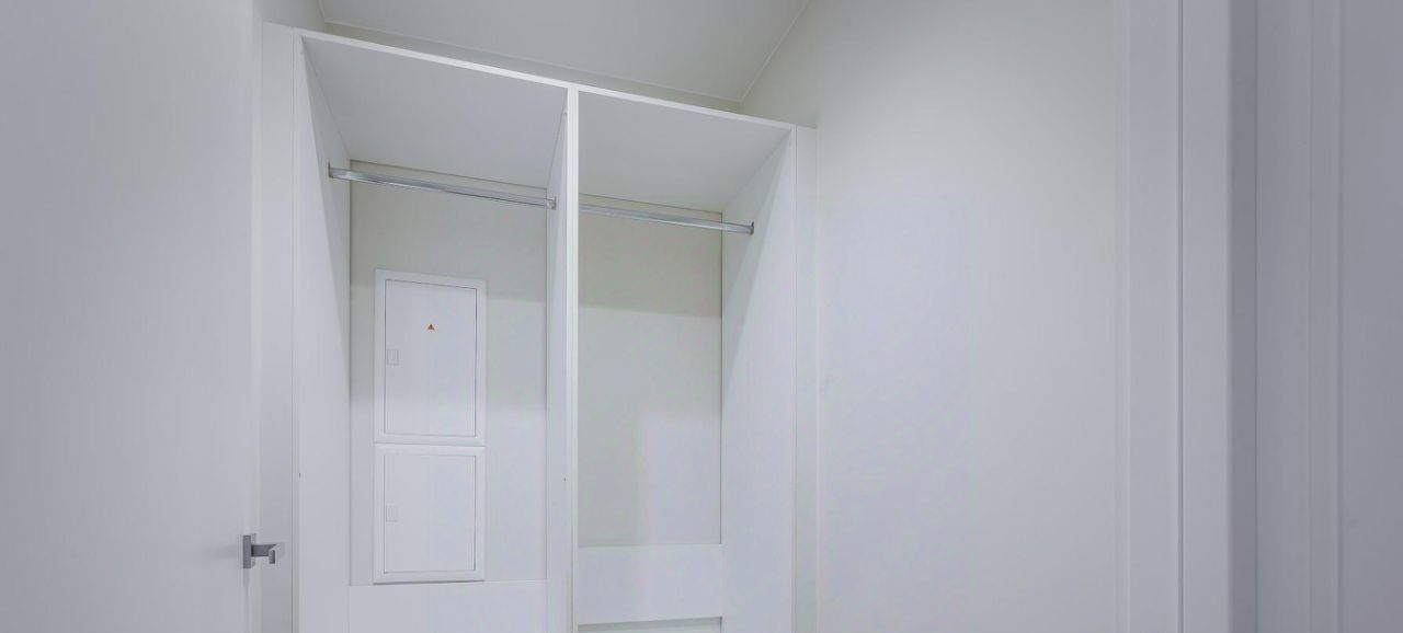 Просторная, 2-комнатная квартира 3469 с гардеробной, евро- планировка (кухня-гостиная + спальня+ санузел), с высокими потолками, площадью 61 м2, расположенная на двадцать третьем этаже нового арендного дома Матч Поинт.