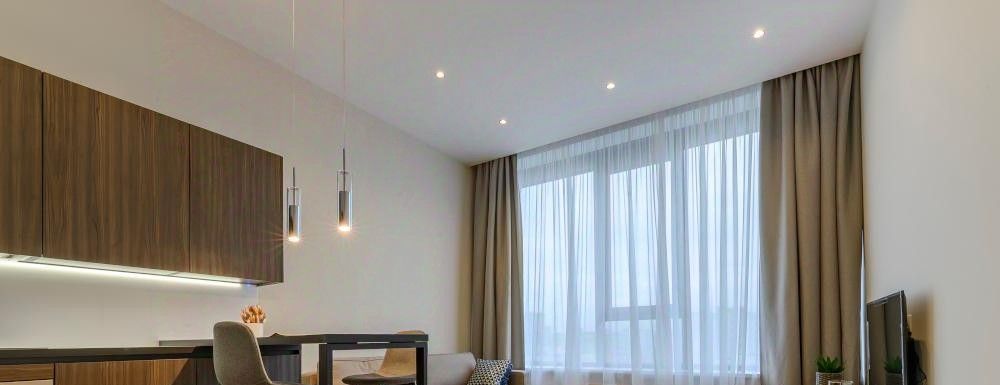 Предлагается в аренду 2-комнатная квартира 4049 с евро планировкой (кухня-гостиная + 1 спальня), высокими потолками площадью 63 м2, расположенная на четвертом этаже нового арендного дома класса Матч Поинт. Окна апартаментов выходят на улицу Василисы Кожиной. Современный эргономичный дизайн, мебель европейского производства, вся необходимая техника, разработанная с использованием умных технологий. Просторная кухня-гостиная оснащена встроенной техникой фирмы Hotpoint: 2-х камерным холодильником, варочной 4-х комфорочной панелью, духовым шкафом, посудомоечной машиной и вытяжкой. При входе в апартаменты вместительная гардеробная комната (5,2 м2), пуф, массив которого выполнен из бука и хвойных пород, материал обивки - ткань "гусиная лапка", панель вешалка. Зона кухни оборудована комплектом кухонной мебели с деревянными фасадами благородного шоколадно-коричневого цвета, стильной барной стойкой и барными стульями на две персоны. В апартаментах предусмотрены два спальных места: в гостиной двуспальный раскладной диван (190 см * 150 см, механизм "еврокнижка", тканевая обивка Casain piain); в спальне большая кровать (180 см * 200 см) с мягким изголовьем и матрасом, выполненным из бельгийского материала с ортопедическим эффектом. Благодаря 5-ти зональному пружинному блоку матраса Ваш позвоночник будет получать превосходную поддержку. Помимо кровати в спальне из мебели есть прикроватные тумбочки со стильными подвесными светильниками над ними, шкаф (вся мебель фирмы Permo, Италия). Чтобы ничего не отвлекало от здорового сна - плазменный TV от Panasonic с TV тумбой дизайнеры разместили в гостиной. Для Вашего комфорта в каждой комнате установлен кондиционер. На окнах помимо тюли есть портьеры Design&Colors, SOLKLIMA DESEN. Совмещенный санузел оборудован душевой кабиной и раковиной, вместительной и удобной в использовании стиральной машиной, большим зеркалом с подсветкой.