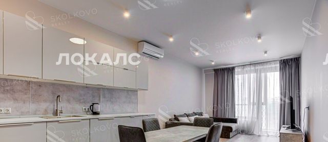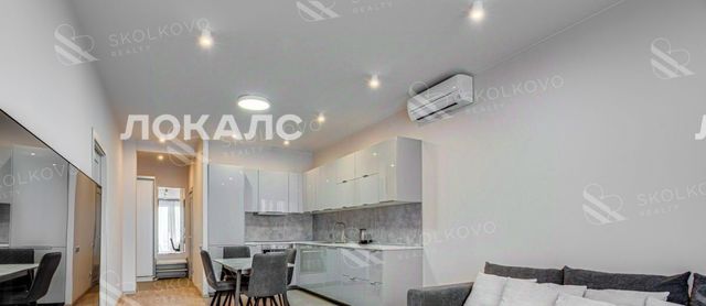 Квартира полностью меблированная и оснащена всей необходимой техникой для комфортного проживания. Кухня площадью 20 кв. м укомплектована современной техникой: холодильником, посудомоечной и стиральной машиной, а также кондиционером.
