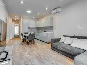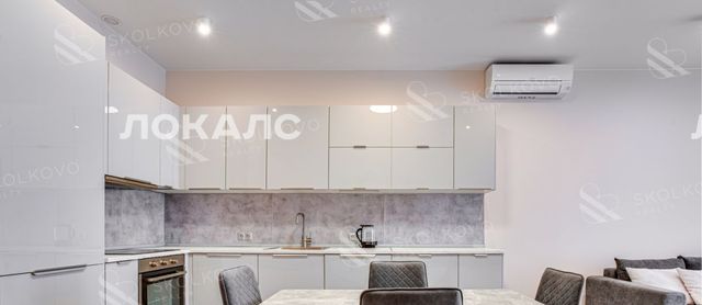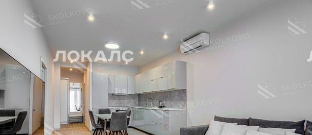 Квартира полностью меблированная и оснащена всей необходимой техникой для комфортного проживания. Кухня площадью 20 кв. м укомплектована современной техникой: холодильником, посудомоечной и стиральной машиной, а также кондиционером.