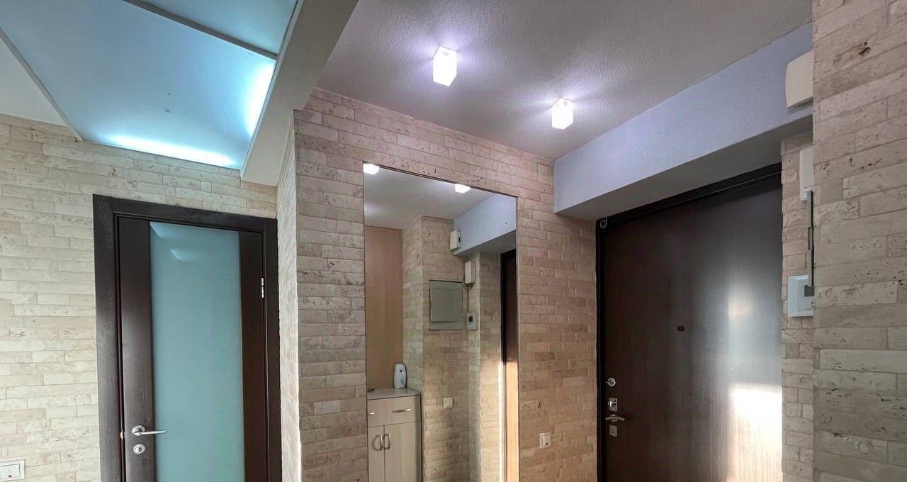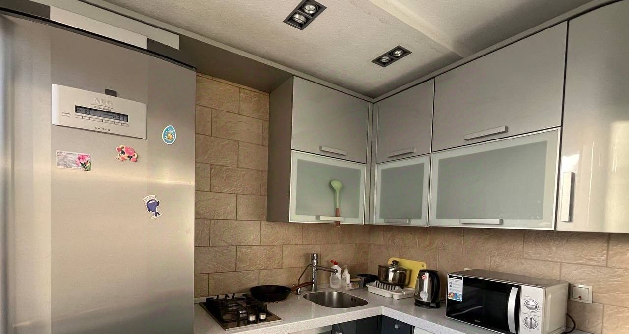 В квартире имеется всё необходимое:холодильник, газовая плита, кондиционер и стиральная машина, чайник, микроволновка. Полы в коридоре с подогревом.