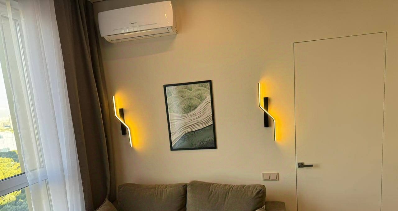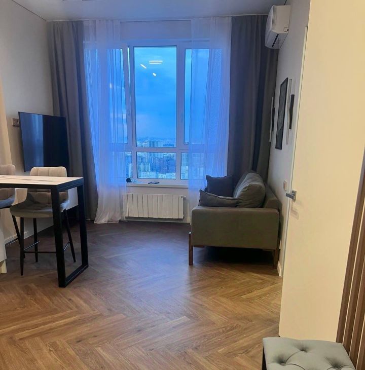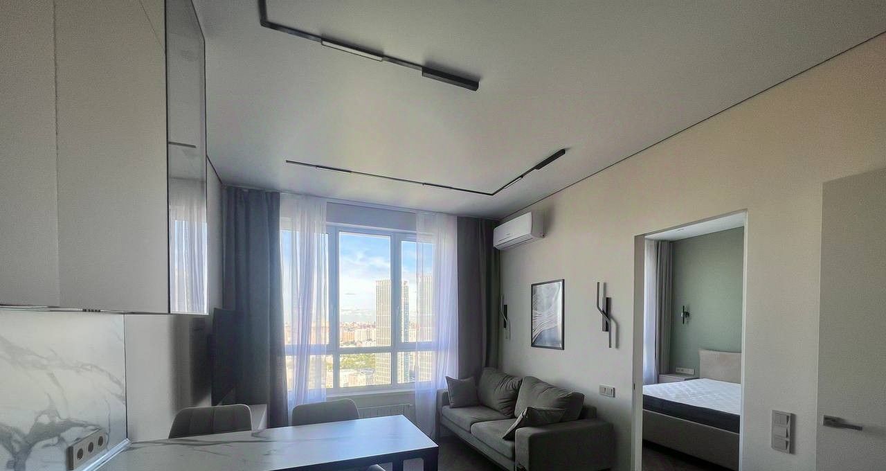 Сдаётся в аренду светлая новая евродвушка рядом с метро/ мцд 4 Аминьевская. Новый жк "Огни 2" от компании ДОН-строй, 38 этаж, шикарный вид на Москву (видно Москву-Сити, главное здание МГУ целиком, весь район Раменки), благоустроенная закрытая территория, подземный паркинг, режим тишины уже действует. Планировка: спальня, кухня-гостиная, совмещенный санузел, гардеробная, имеется кондиционер. Квартира полностью укомплектована и меблирована: холодильник, посудомойка, индукционная плита, духовка, измельчитель пищевых отходов, встроенный фильтр для воды, телевизор 55 дюймов. ЖК находится в 7 минутах пешком от метро Аминьевская (ТПУ метро+МЦД-4), по МЦД-4 до Москва-Сити можно добраться за 12 минут, до Белорусской за 17 минут. На территории ЖК есть терраса с рестораном, периодически проводятся кинопоказы на улице, отличная спортивная и детская площадки, детская комната. В паре минут ходьбы находится большой красивый парк Событие.