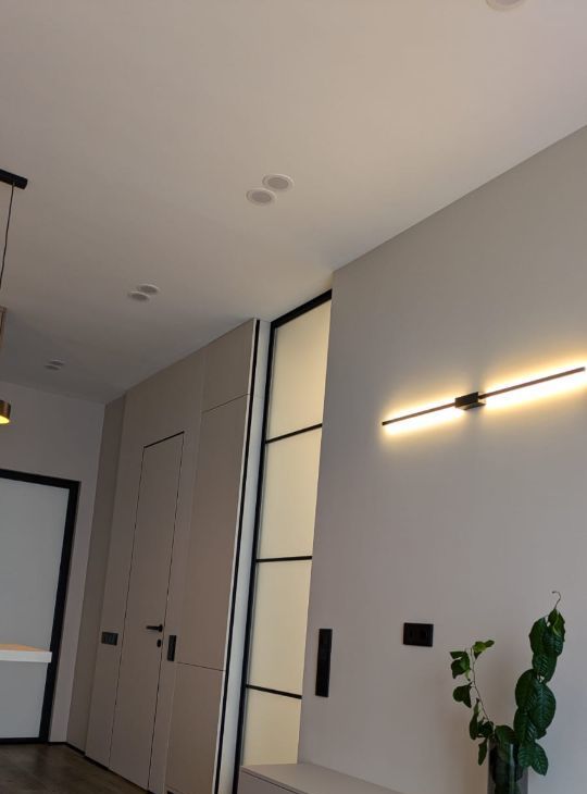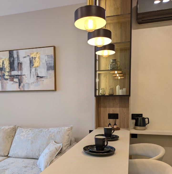 Много хранения - встроенные шкафы от пола до потока. Полностью укомплектованная кухня. Удобное рабочее место для удаленной работы.