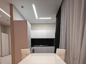 ЖК "ОГНИ-2". Впервые сдаётся на длительный срок дизайнерская светлая 2 комнатная квартира с дизайнерским ремонтом, полностью укомплектована мебелью и качественной бытовой техникой с красивым и просторным видом из окна на восток. В каждой комнате установлены кондиционеры, система антипротечка Нептун, измельчитель пищевых отходов, система фильтрации воды, в гостиной ТВ 75 дюймов.