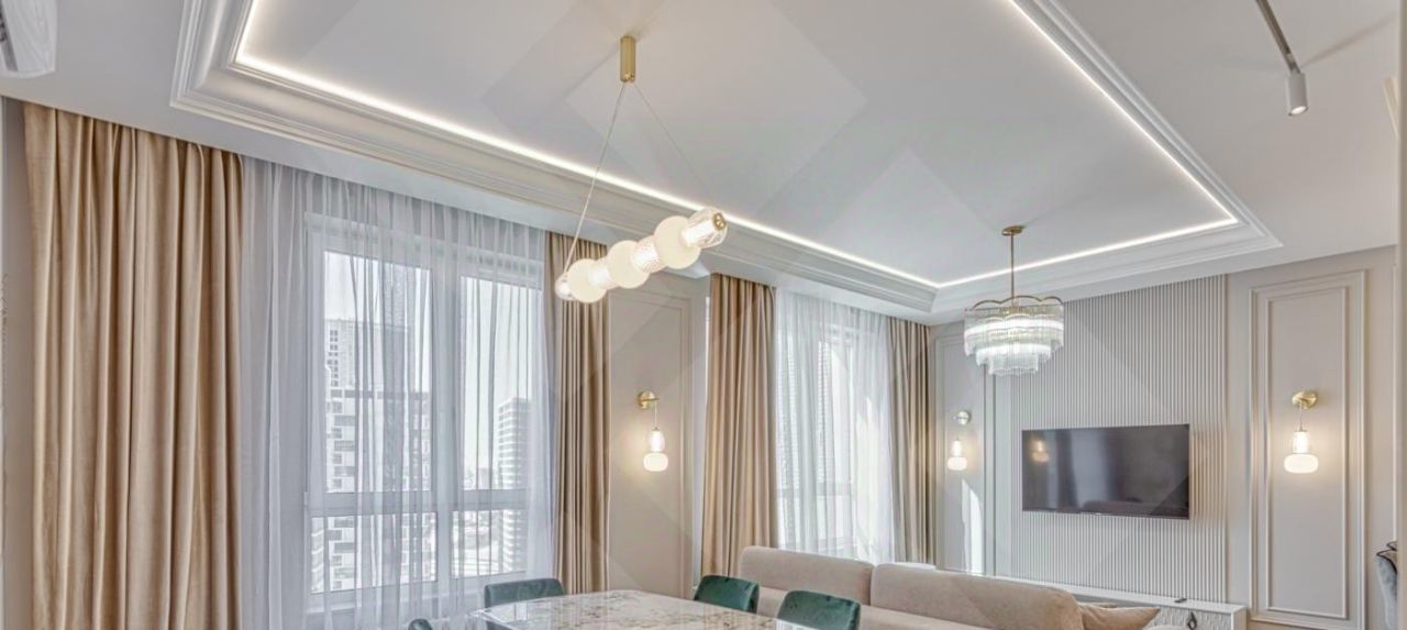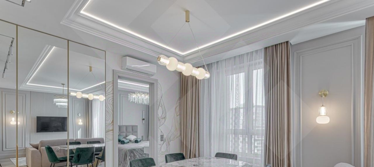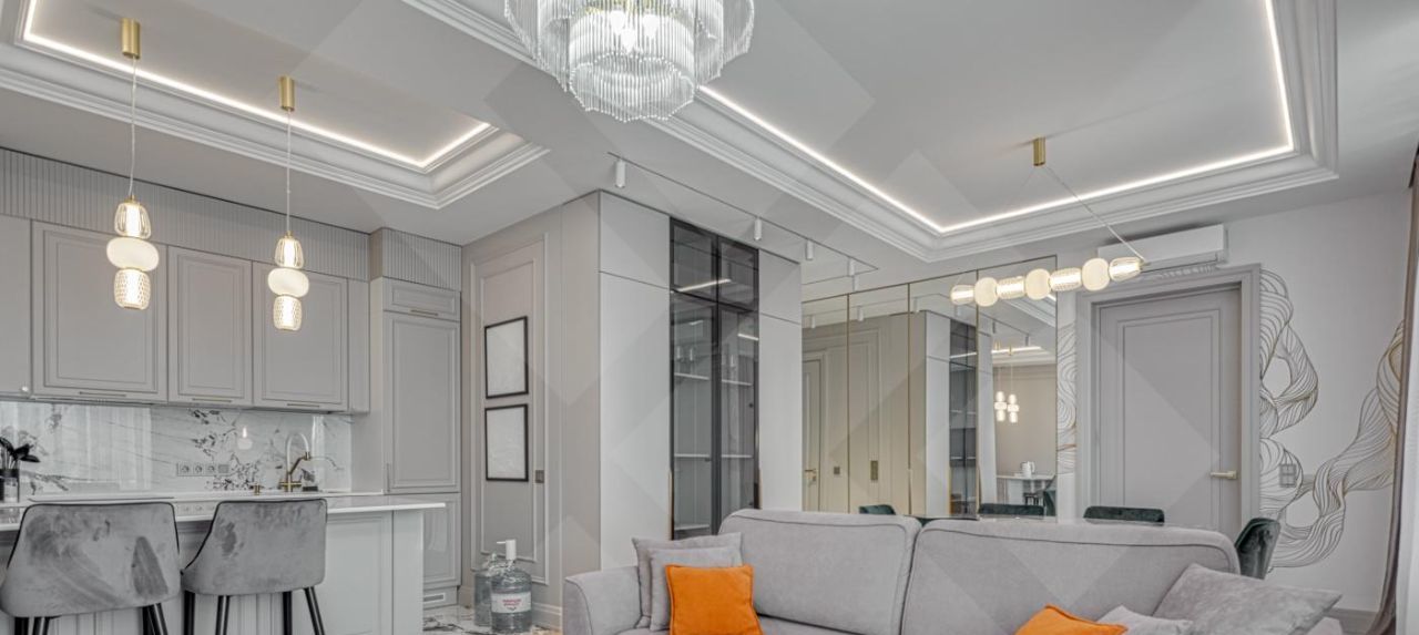 В квартире сделан дизайнерский ремонт, что подчеркивает ее стиль и современность.