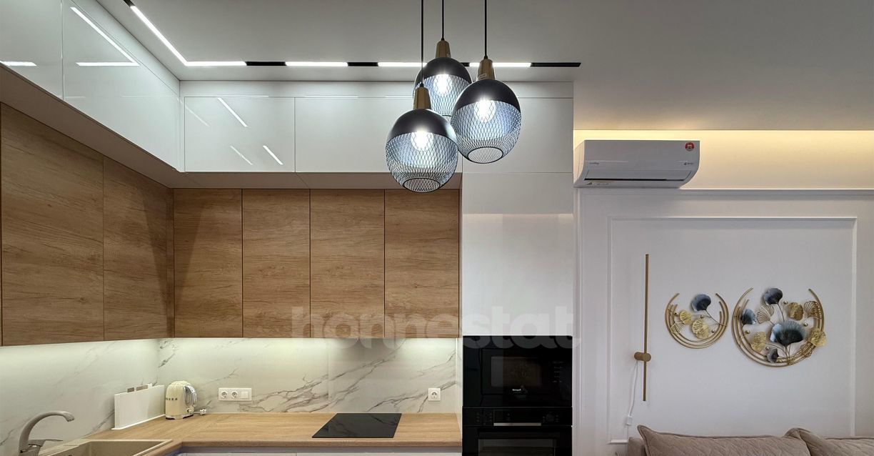 В квартире есть все необходимое для комфортного проживания. Дизайнерский ремонт создает атмосферу уюта и стиля. Квартира оборудована всей необходимой техникой: кондиционер, холодильник, посудомоечная машина, телевизор и стиральная машина. В ванной комнате установлена ванна, что сделает ваши вечера более расслабленными.