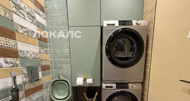 Полный цикл ухода за вещами: Стиральная и сушильная машины, встроенная гладильная доска.
