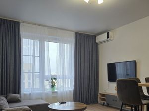 В квартире сделан качественный евроремонт, а также установлена вся необходимая техника: кондиционеры, холодильник, посудомоечная и стиральная машины, микроволновка, духовка, плита. Готова к заселению.