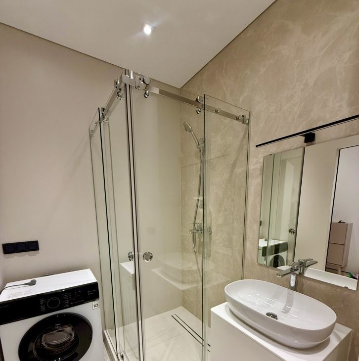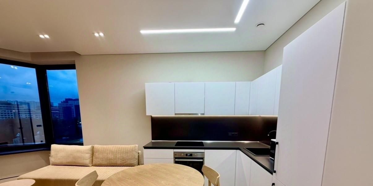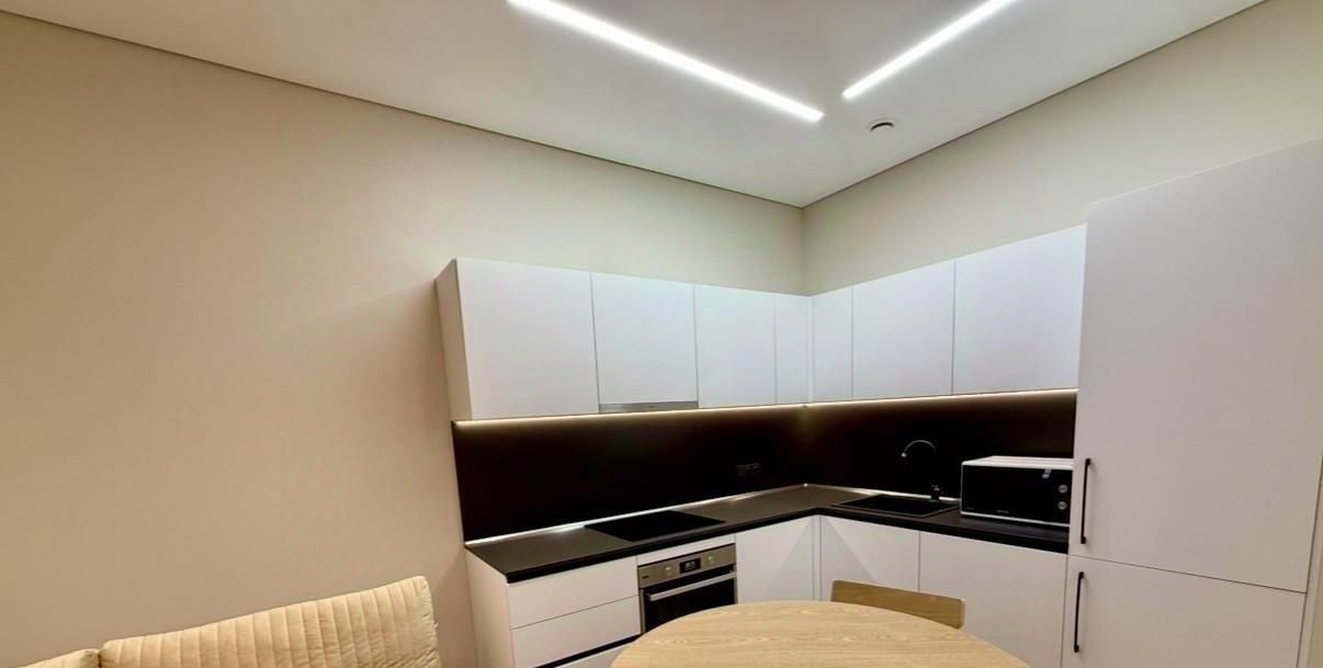В квартире сделан качественный евроремонт, а также установлена вся необходимая техника: кондиционеры, холодильник, посудомоечная и стиральная машины, микроволновка, духовка, плита. Готова к заселению.