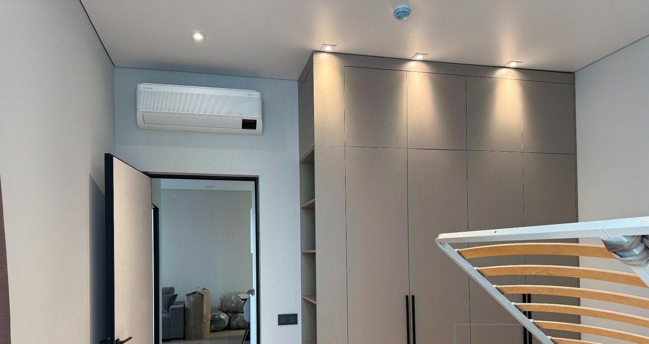 В квартире уже есть вся необходимая бытовая техника, включая кондиционеры, холодильник, стиральную машину, микроволновку.