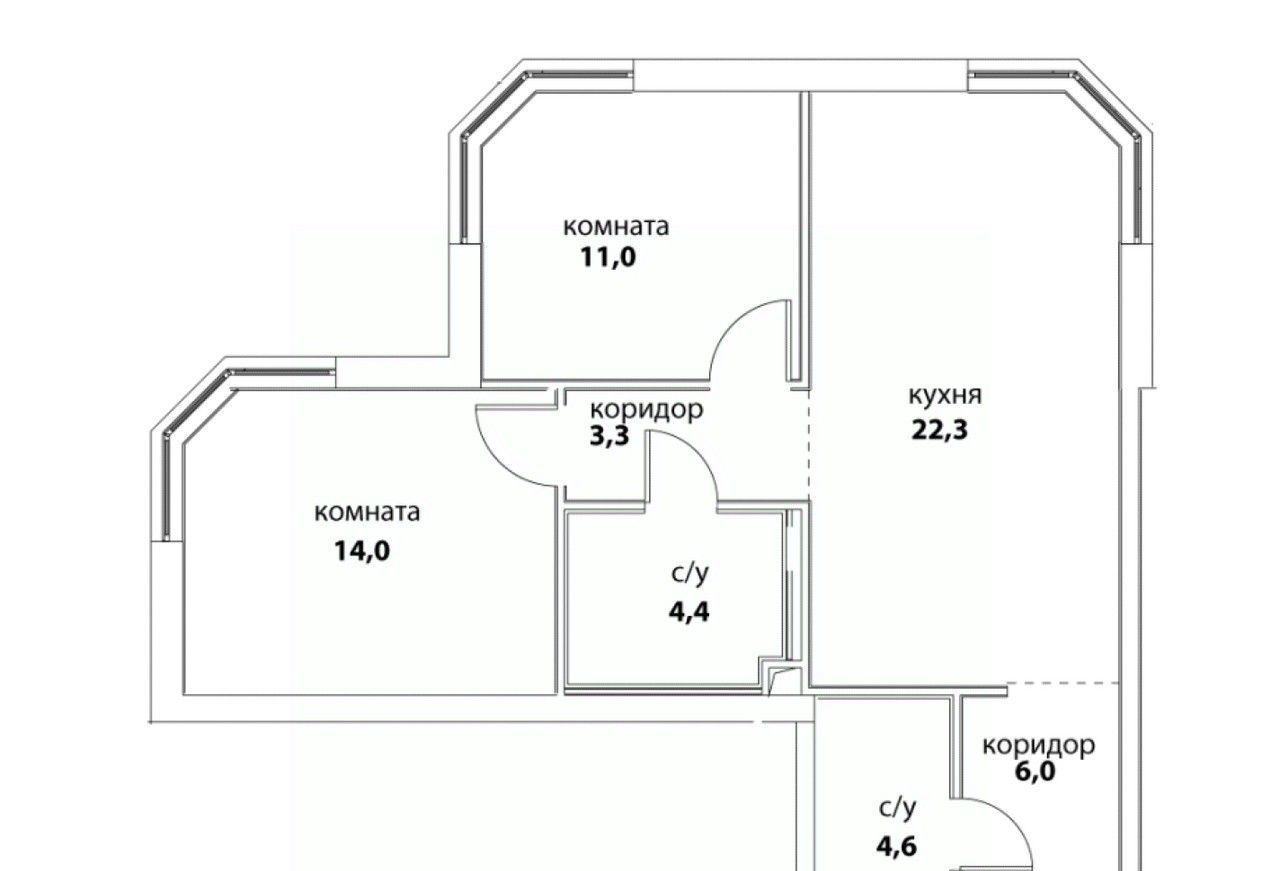 Удобная евро-планировка радует изолированными комнатами и просторной кухней-гостиной 22,3 м².