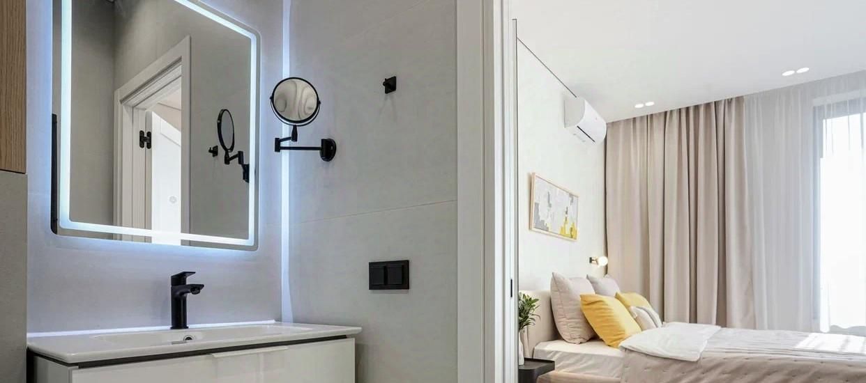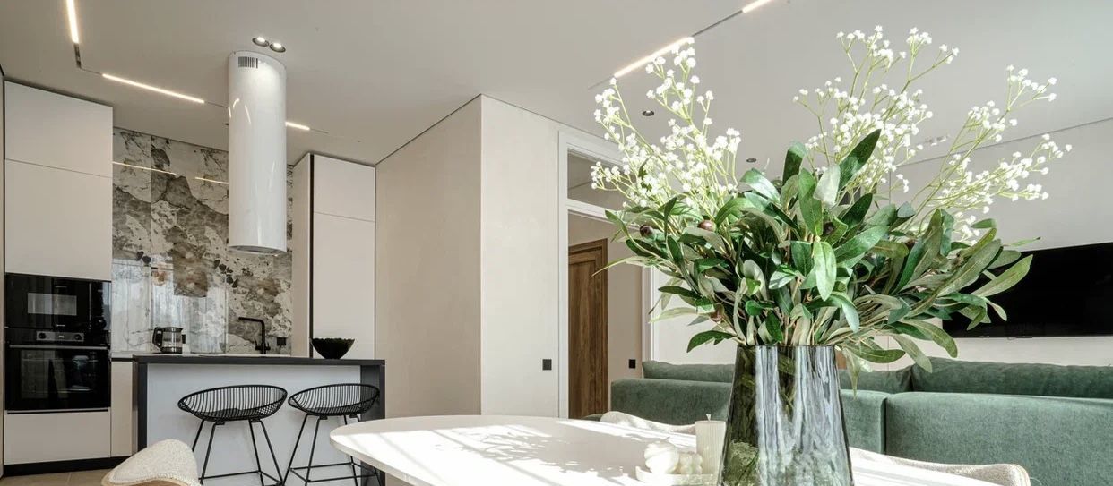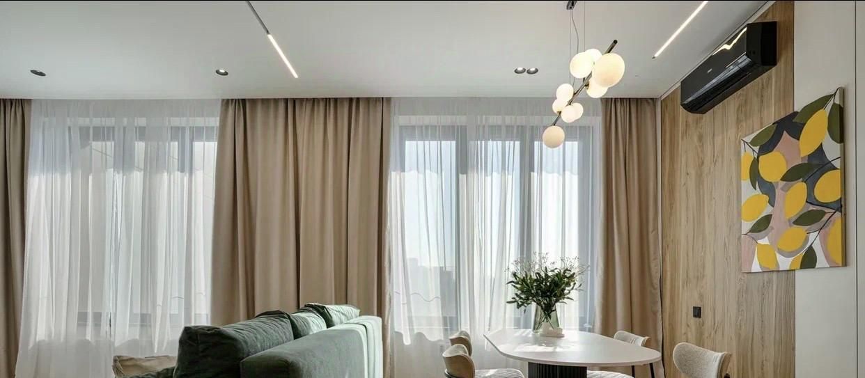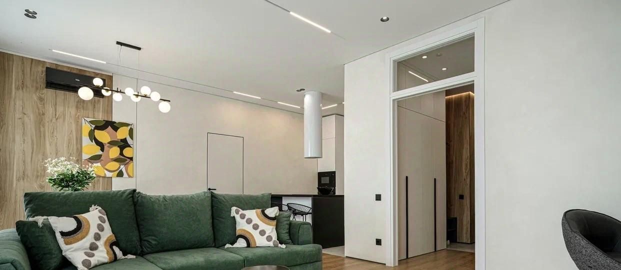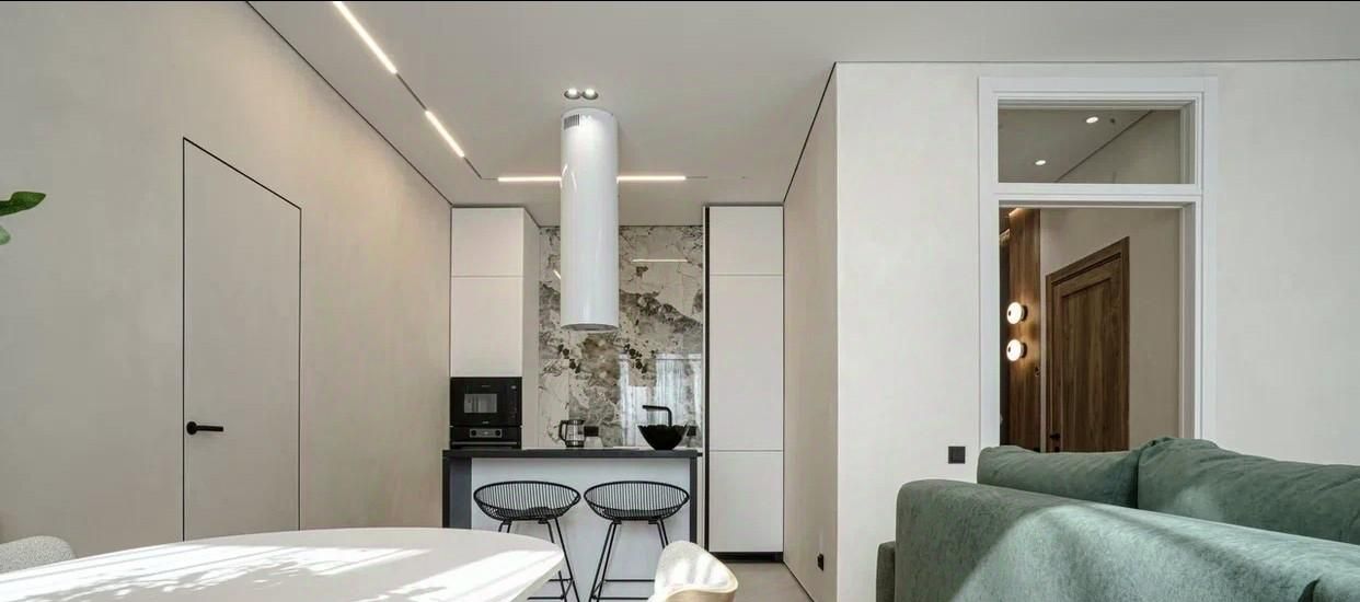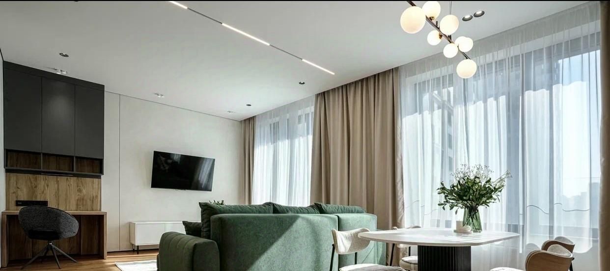 Предлагается в наём новая современная квартира с дизайнерской отделкой в ЖК Событие. Сдается впервые, полностью меблирована и укомплектована бытовой техникой. Высокие потолки 3,1 м. и панорамные окна добавляют помещению пространства. Мебель выполнена по индивидуальному проекту с отлично продуманной системой хранения. Планировка включает прихожую, кухню-гостиную, мастер спальню с гардеробной и санузлом. Квартира укомплектована всем необходимым, техника отвечает современным требованиям: посудомоечная, стиральная и сушильная машины, кондиционеры, система обнаружения задымления, датчики протечки в мокрых зонах с автоматическим отключением воды. Теплые полы в прихожей , кухне и санузлах.